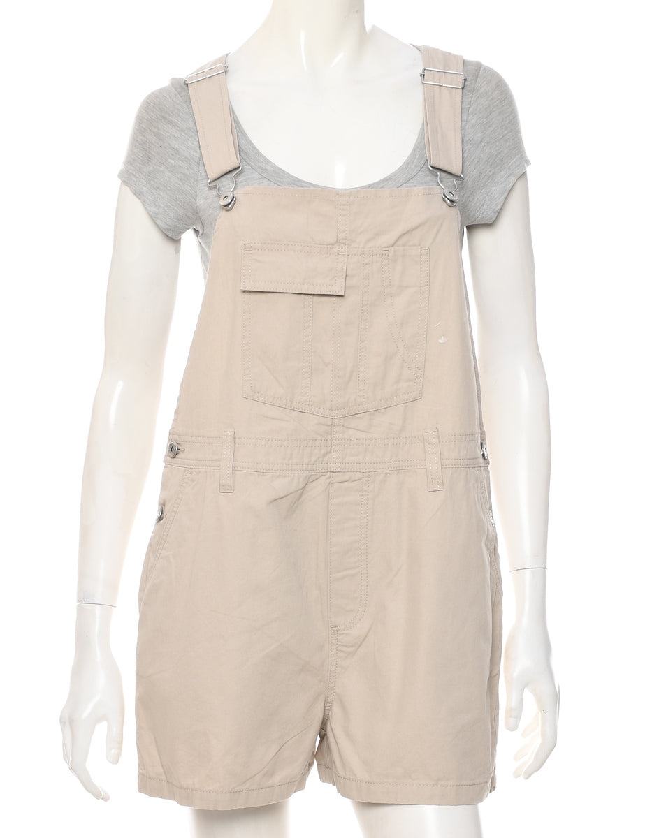 Straight leg cropped dungarees. Comes in light brown with adjustable strap and multiple pockets.
