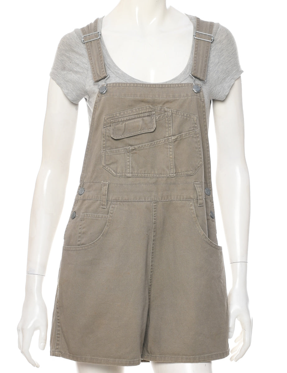 Vintage Olive Green Cropped Dungarees - W34 L4