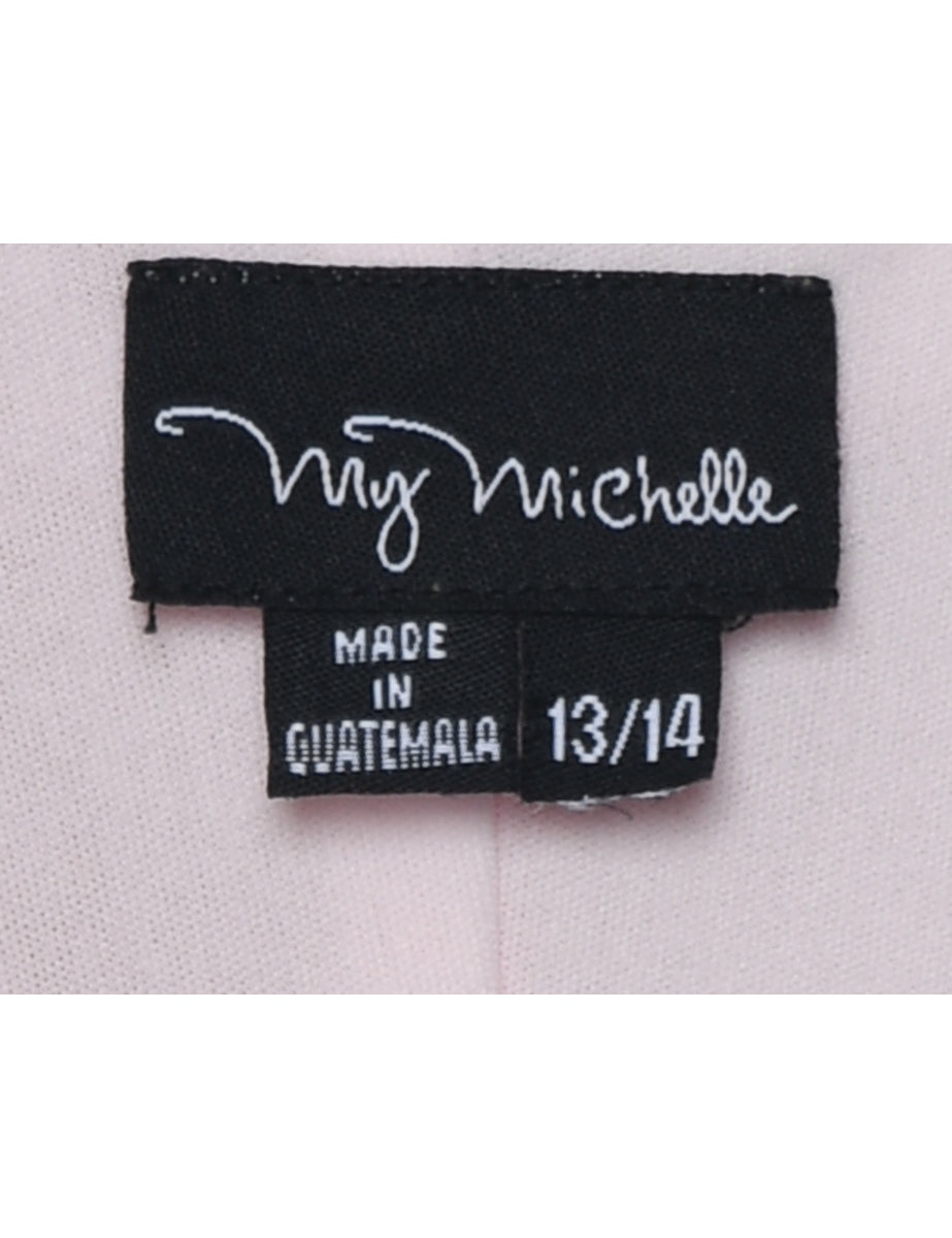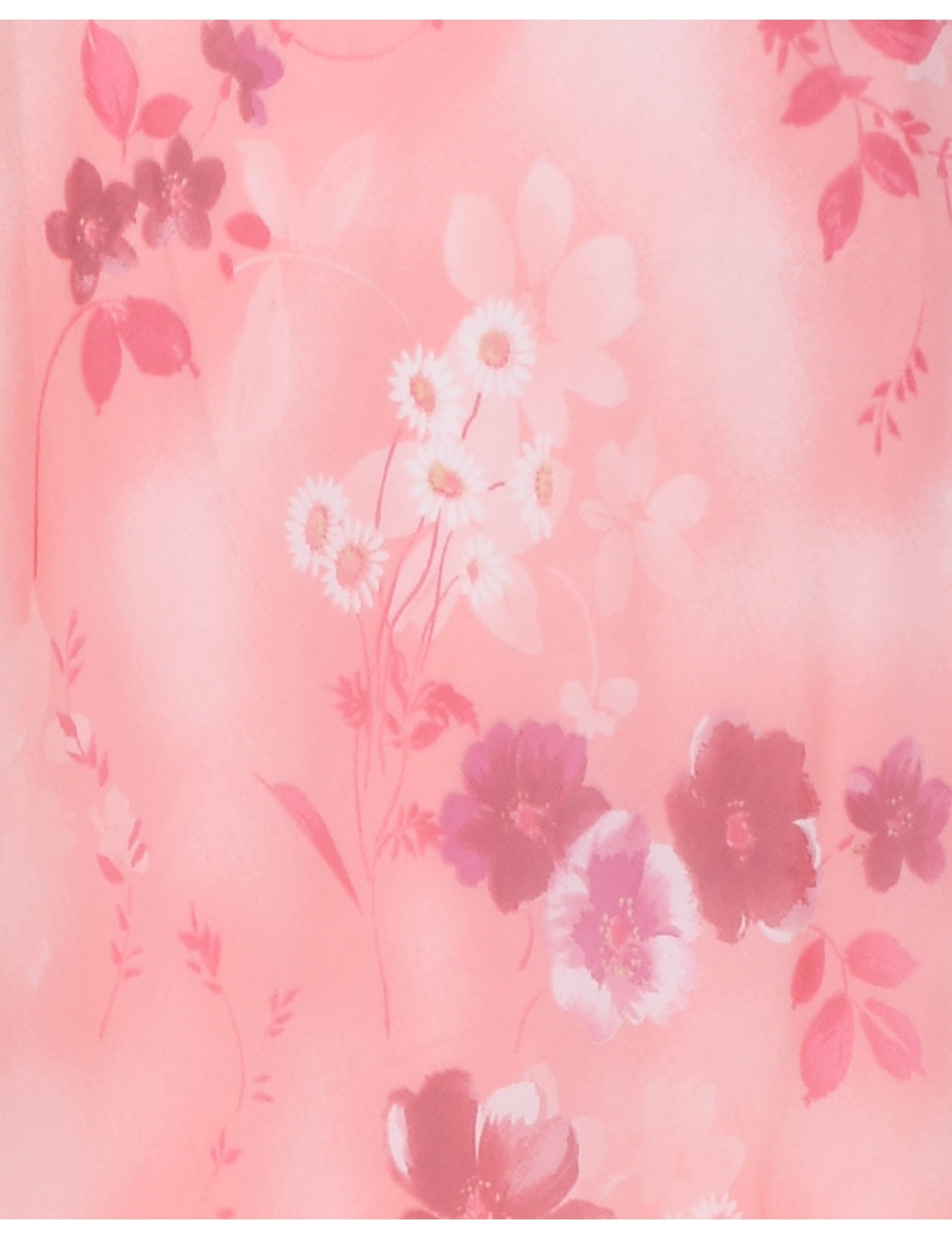 Floral print maxi dress comes in pale pink with v neck.