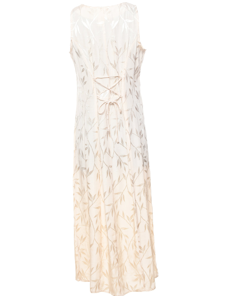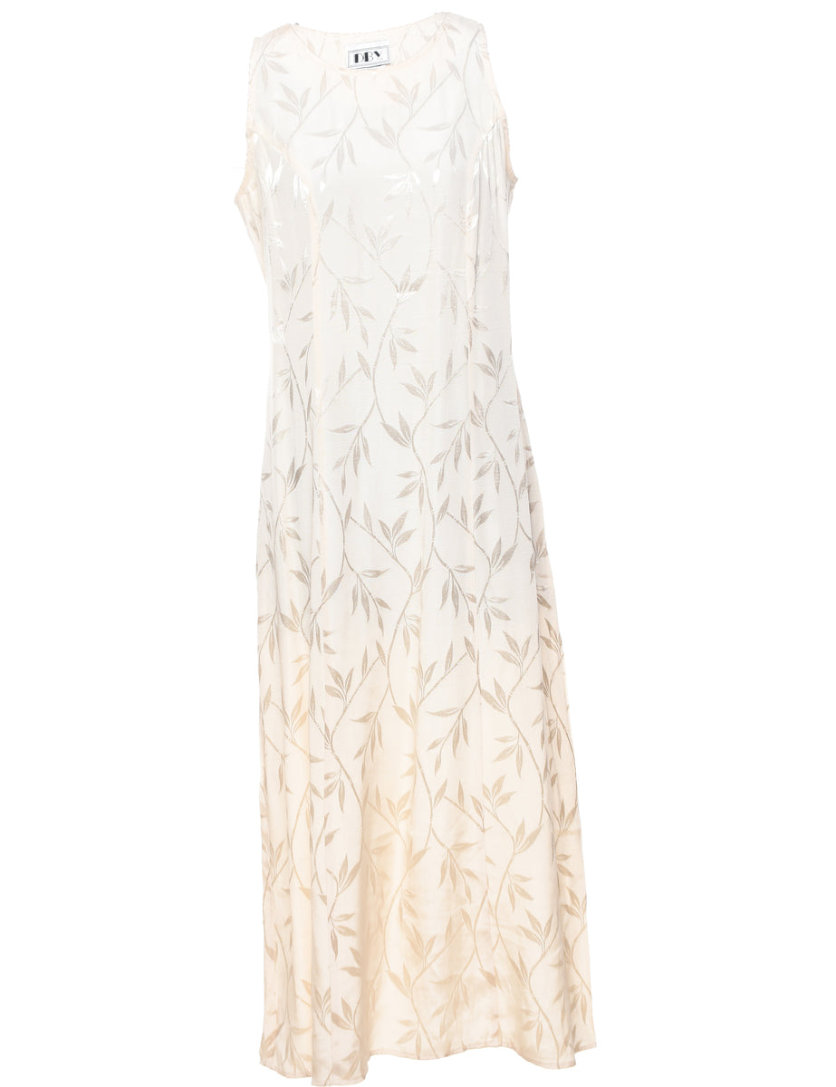 Vintage Foliage Print Off-White Metallic Evening Dress - M