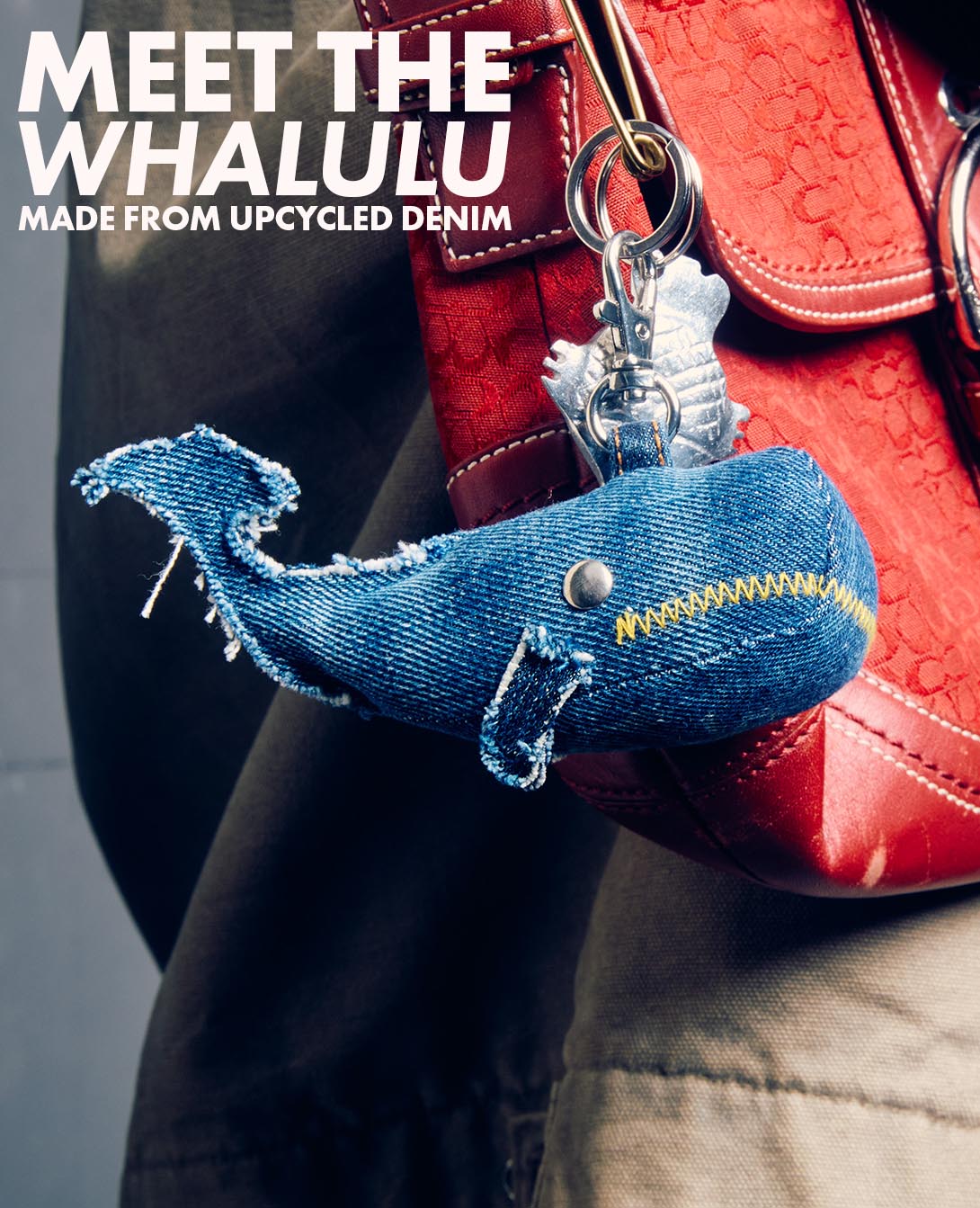 Fashioned [sic] from recycled denim, Whalulu is your sustainable antidote to plastic consumerism.