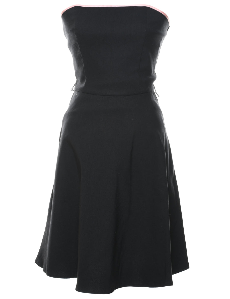 Black Classic Strapless Pleated Dress - M