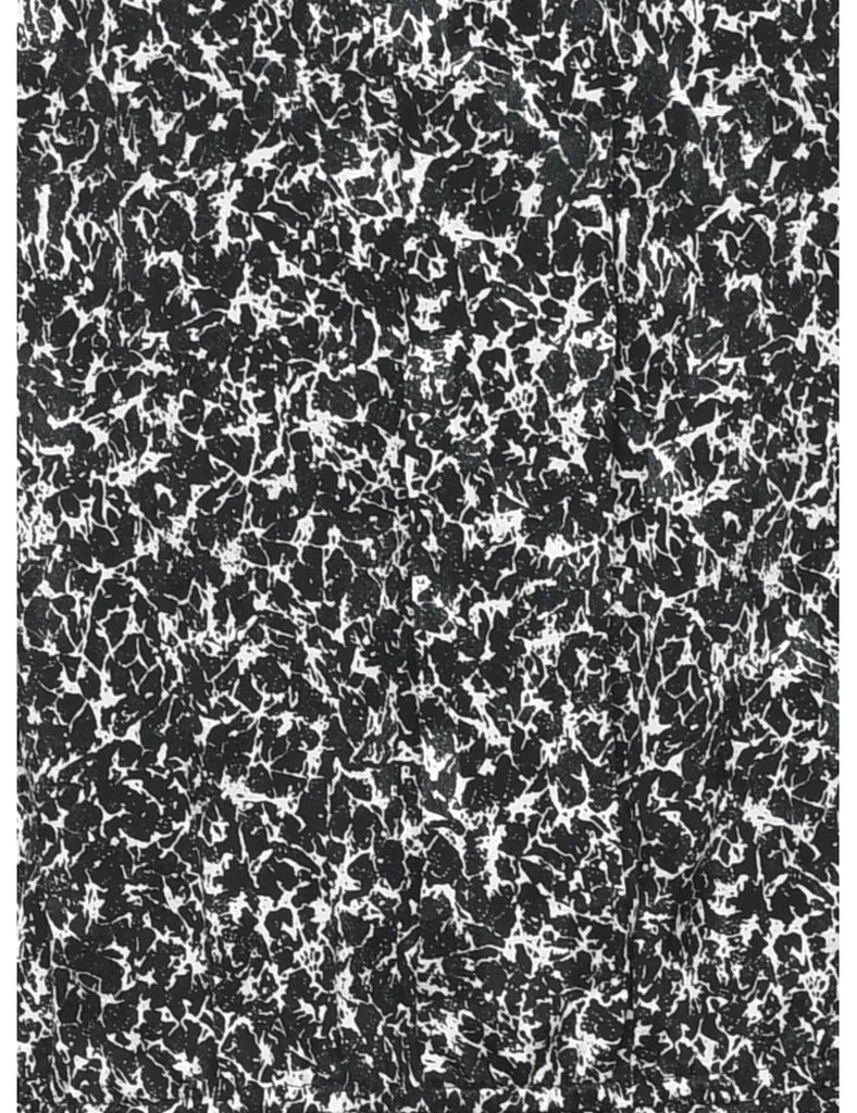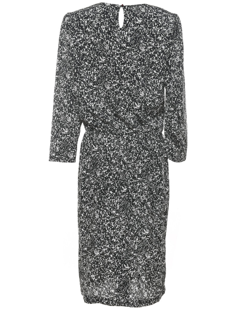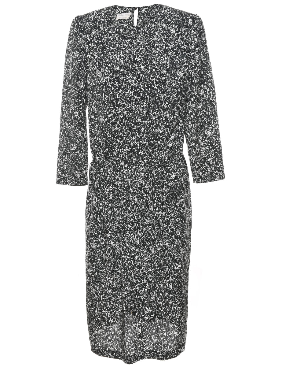 Midi length black & white dress with removable shoulder pads.