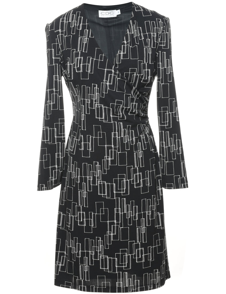 Long sleeved dress. Comes in black with a cross-over front and ruched detailing.