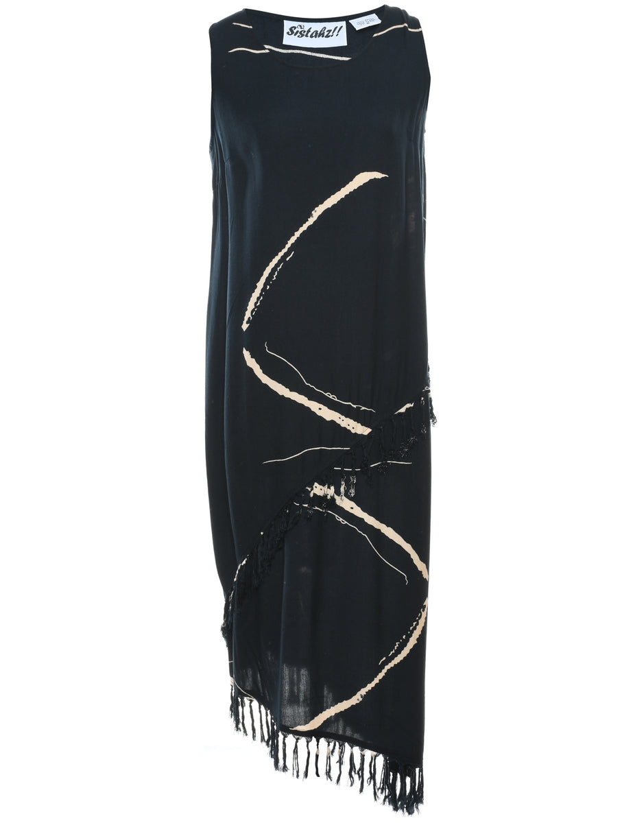 Black & Off-White Asymmetric Dress - M