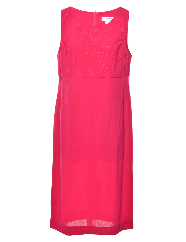 Embroidered sleeveless dress in hot pink with side slit. From the brand Sag Harbor.