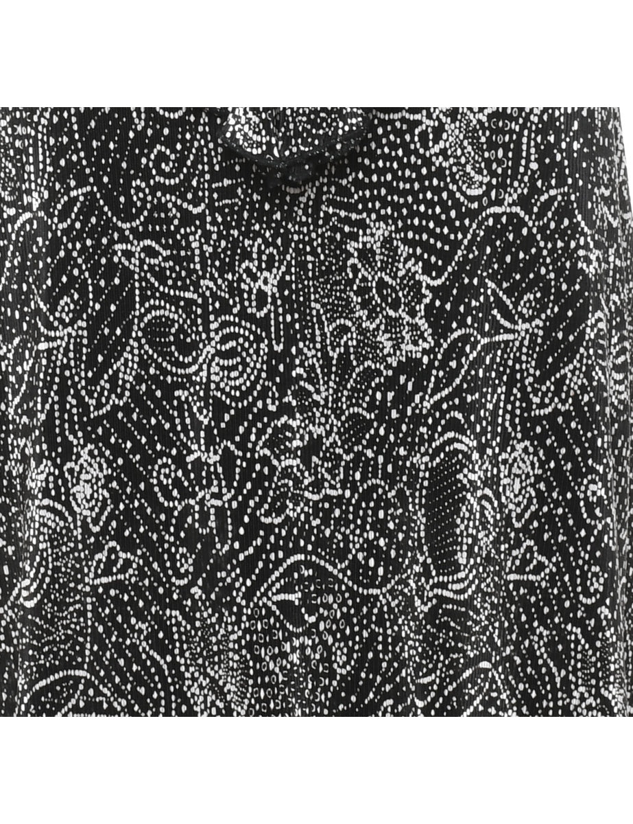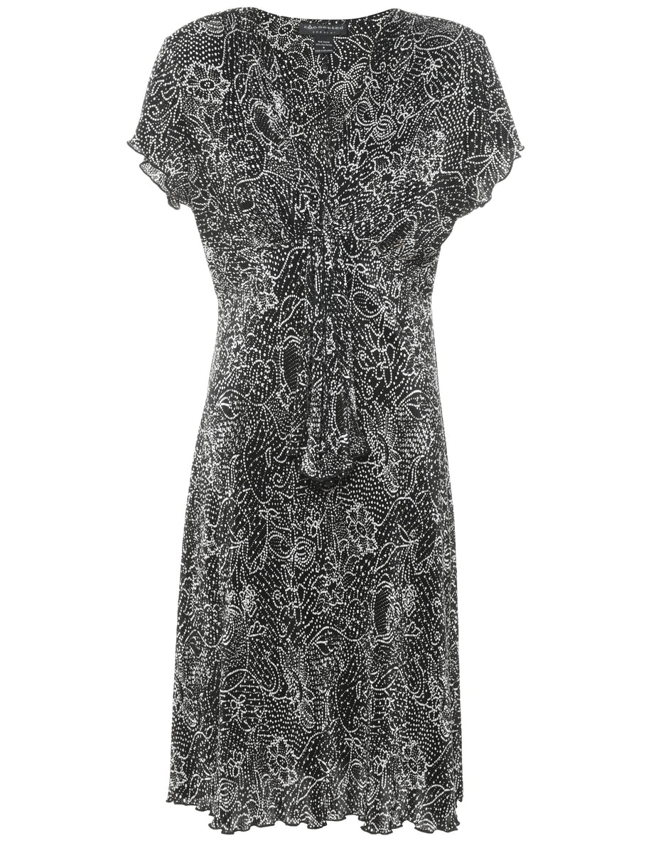 Floral print dress in black & off white with removable shoulder pads.