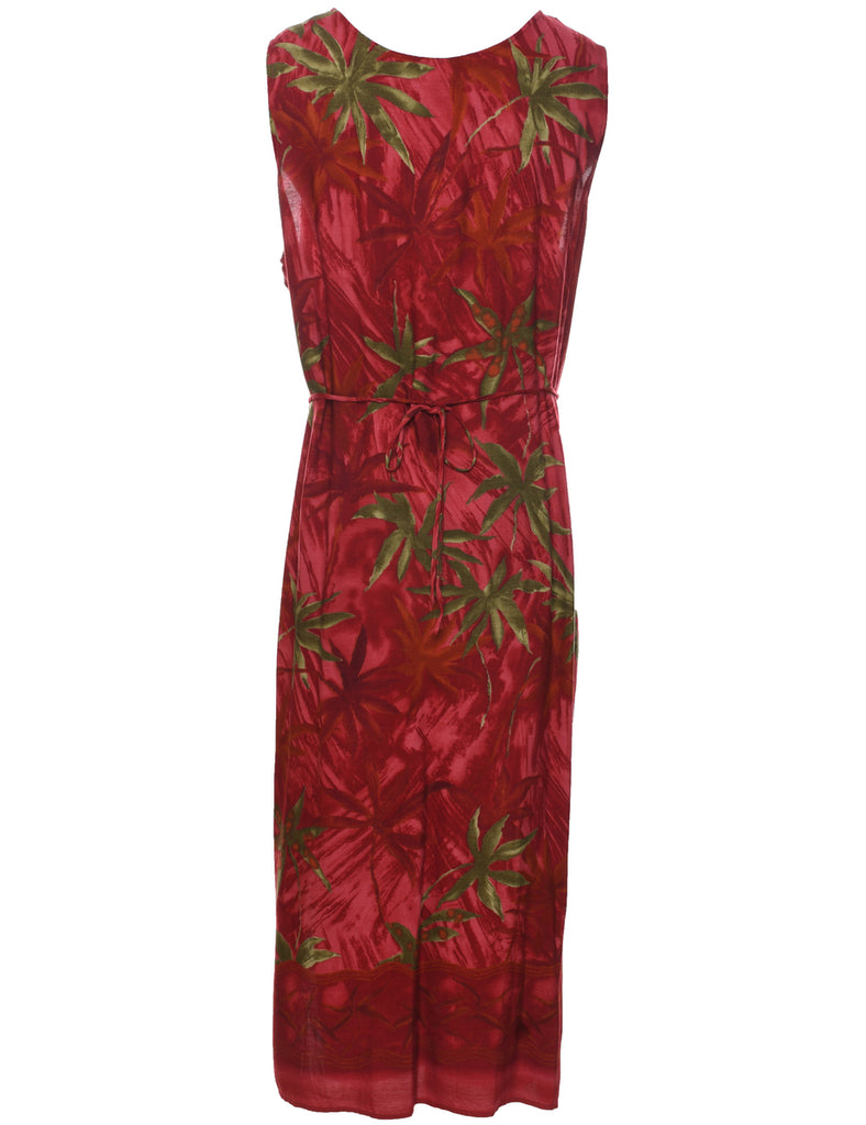 Floral print maxi dress in red with back tie and a round neck.