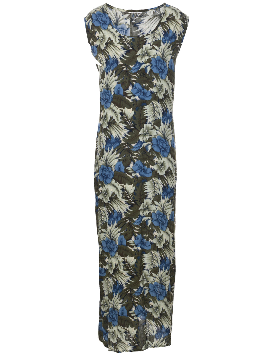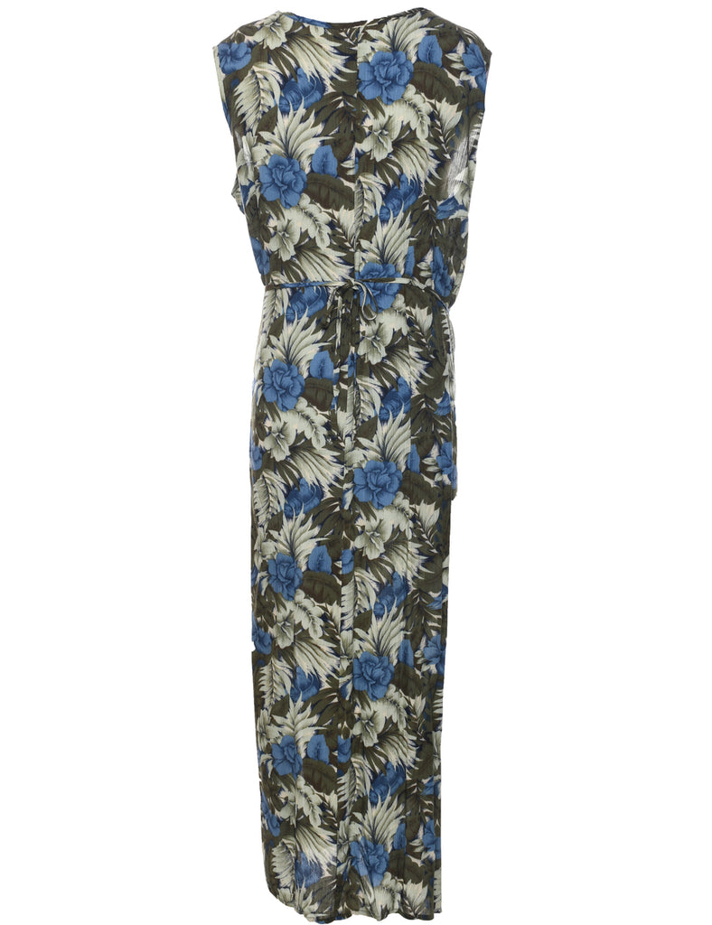 Floral print maxi dress comes in multi-colour with back tie and round neck.