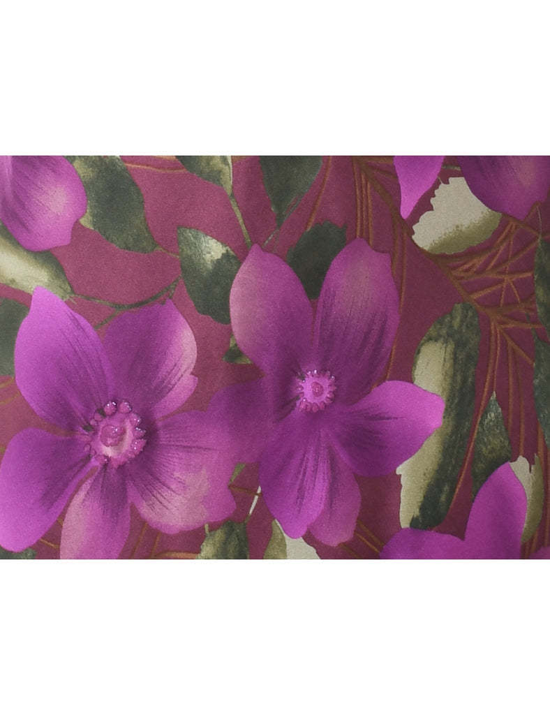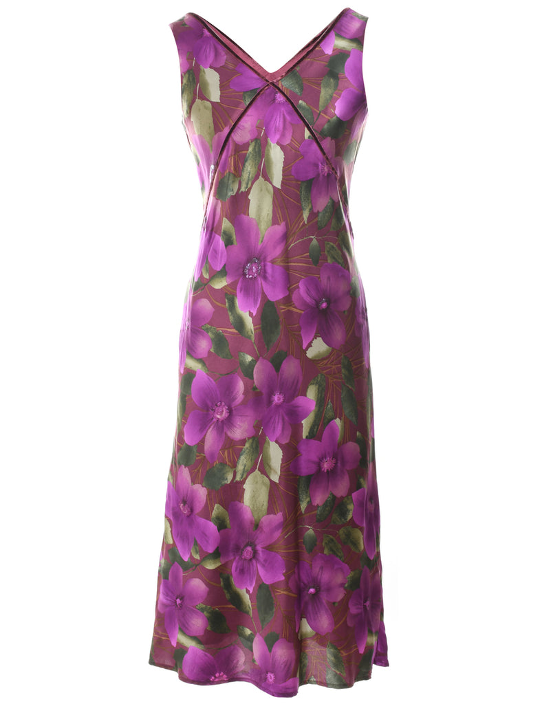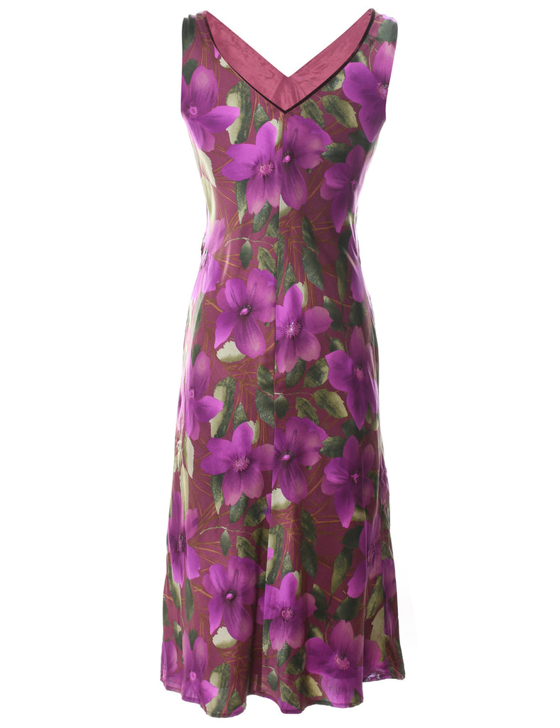 Floral Print Multi-Colour V-Neck Midi Dress - S