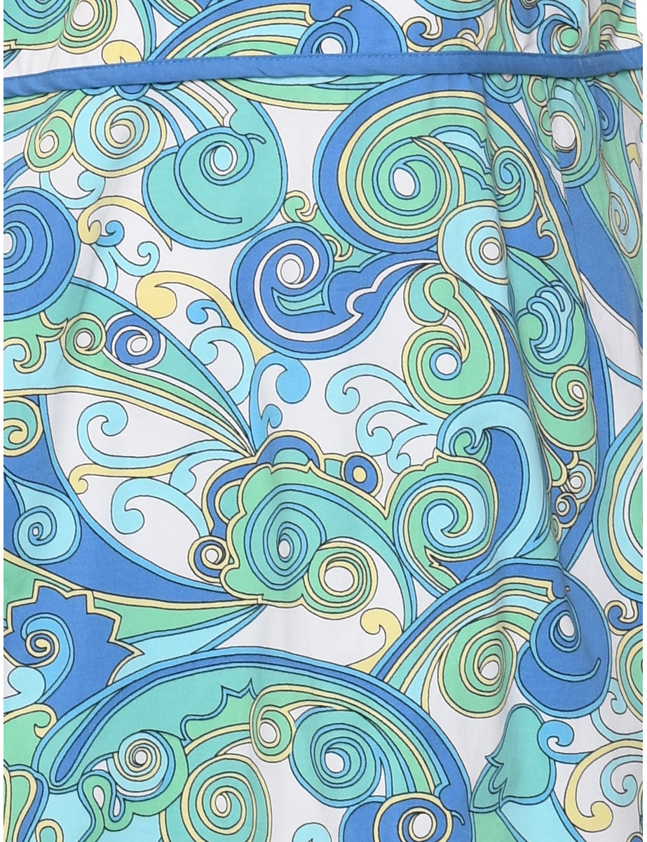 Halter dress in multi-colour with a cross-over front.
