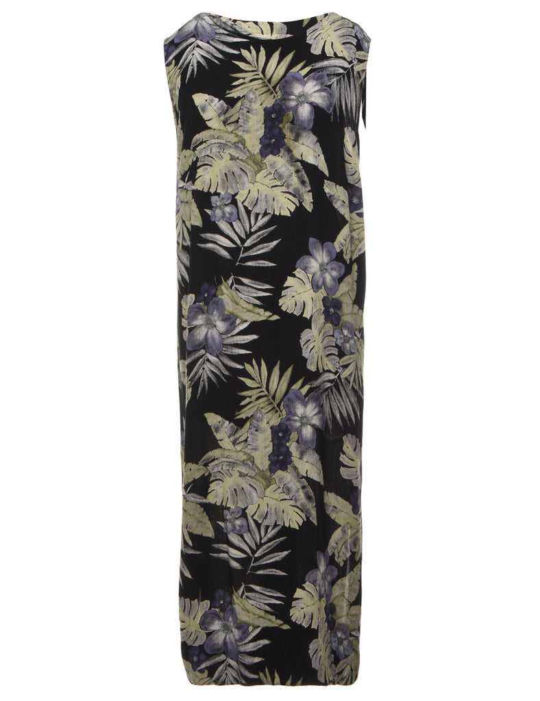 Hawaiian Print Black Maxi Dress - XL