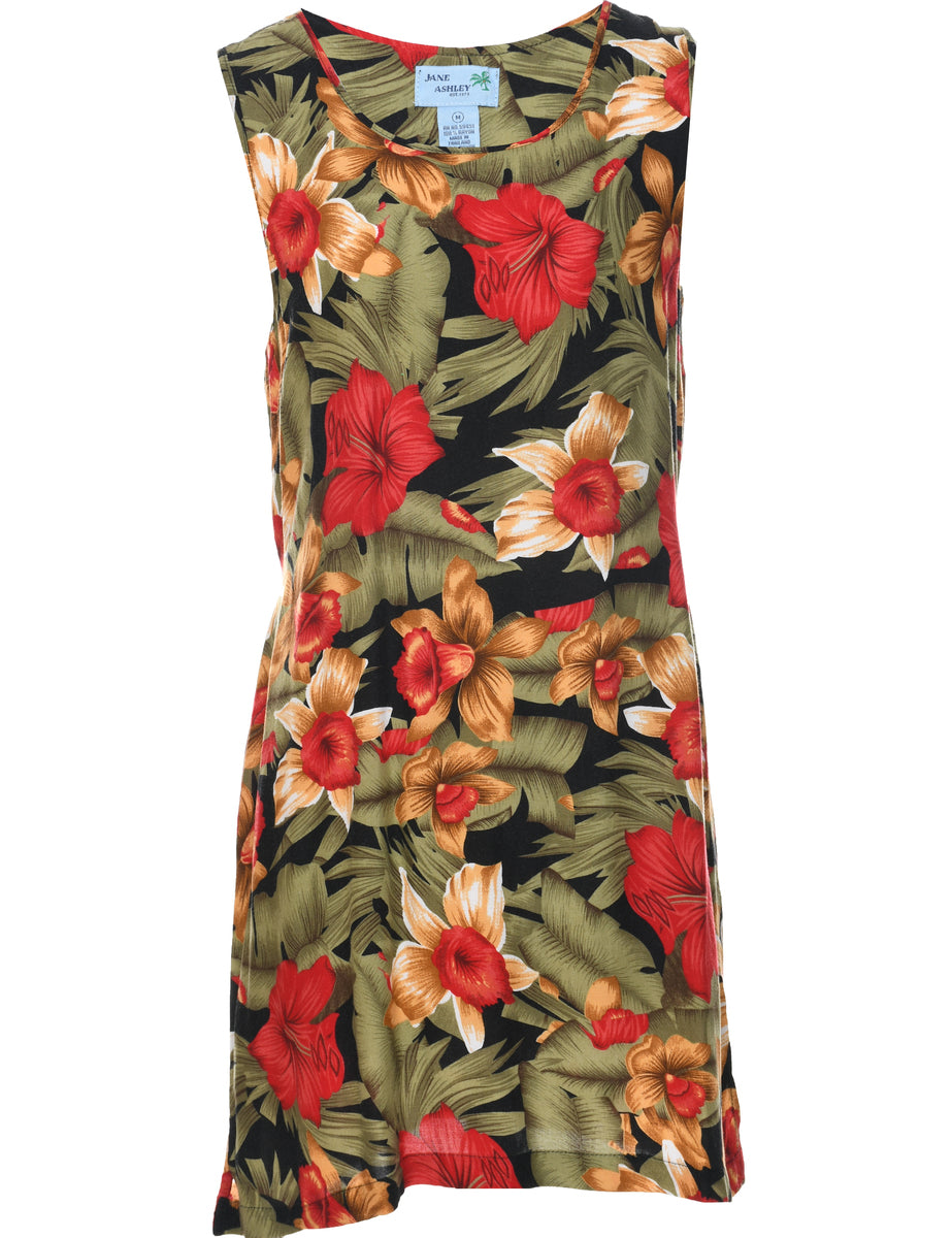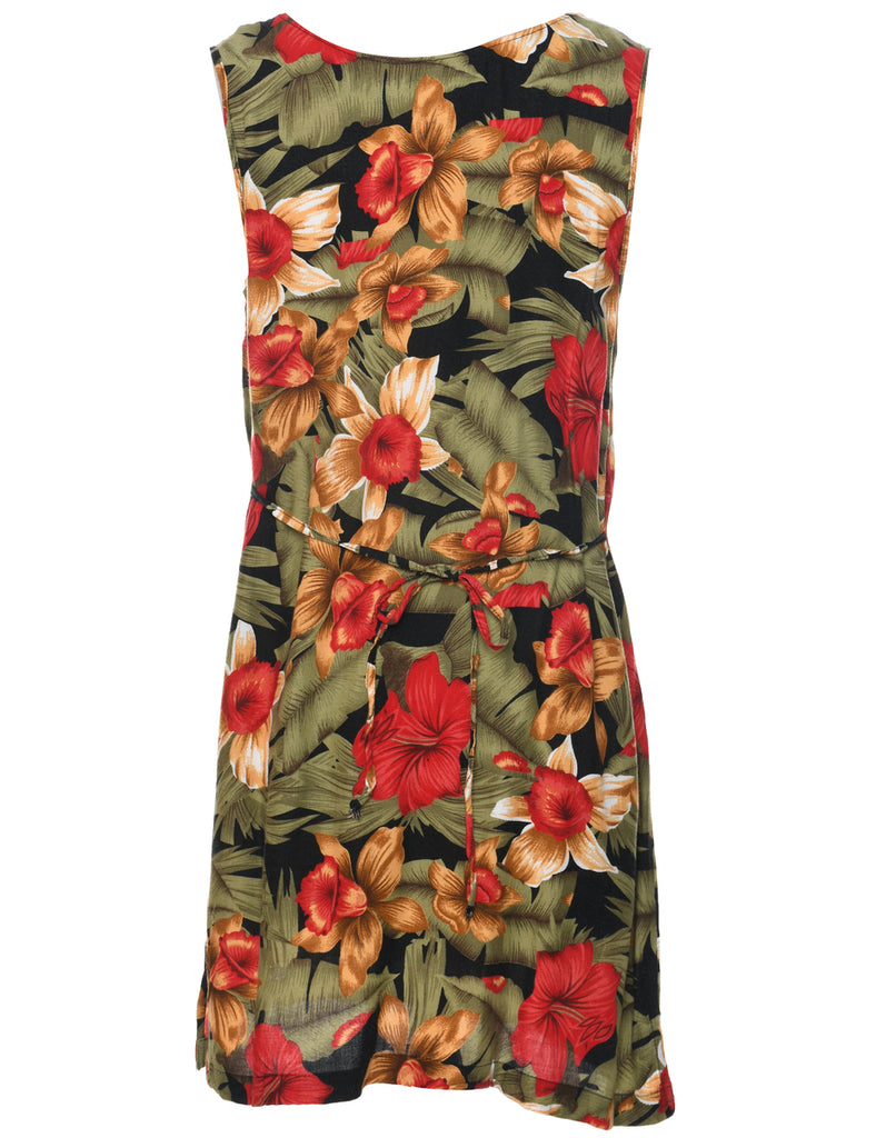 Floral print sleeveless dress. Comes in multi-colour with back tie and a round neck.
