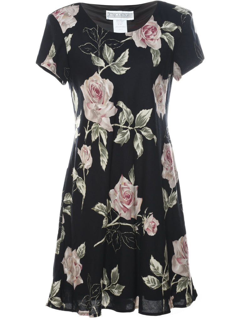 Jessica Howard Black & Pale Pink Floral Dress - M