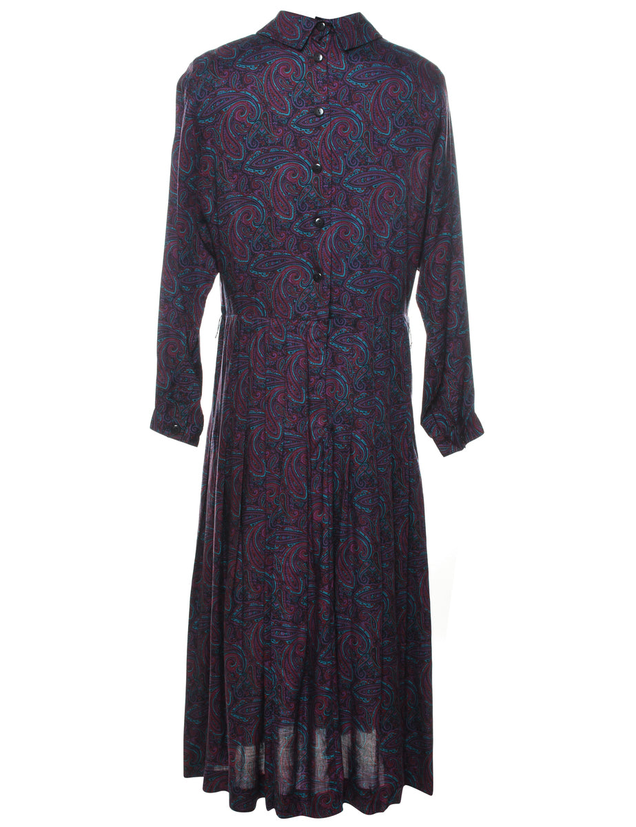 Paisley print multi-colour dress complete with removable shoulder pads and a classic collar.