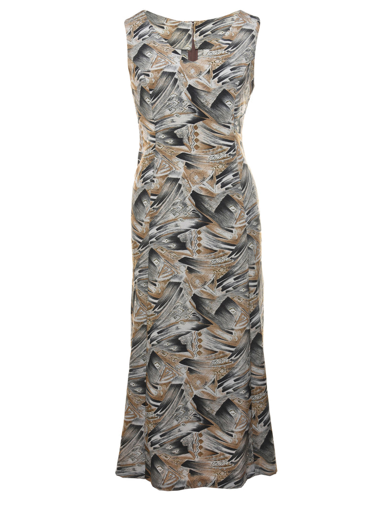Patterned maxi dress. Comes in multi-colour with a v-neck.