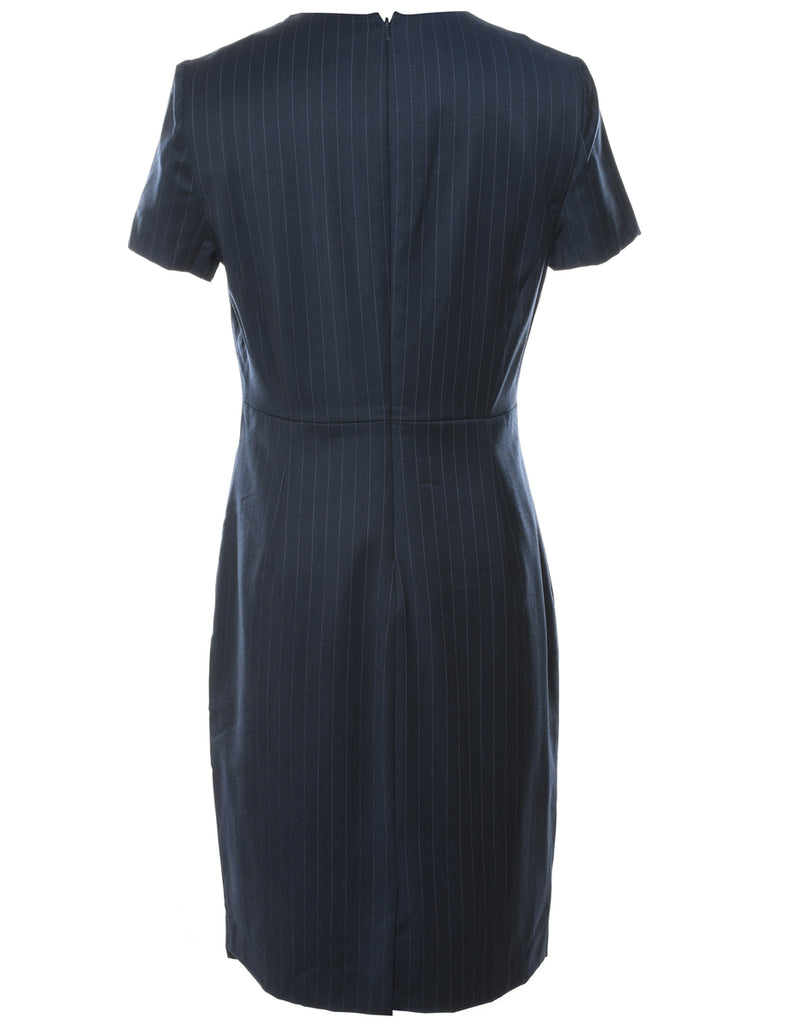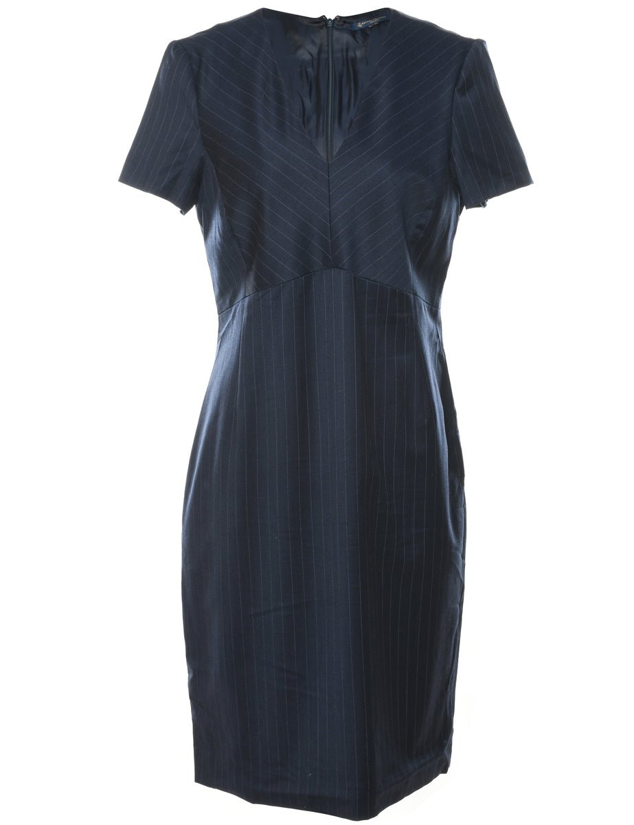 Pinstriped dress in navy with full lining.