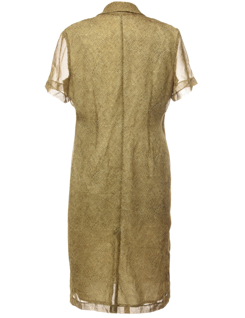 Short sleeve dress. Comes in olive green with full lining and removable shoulder pads.