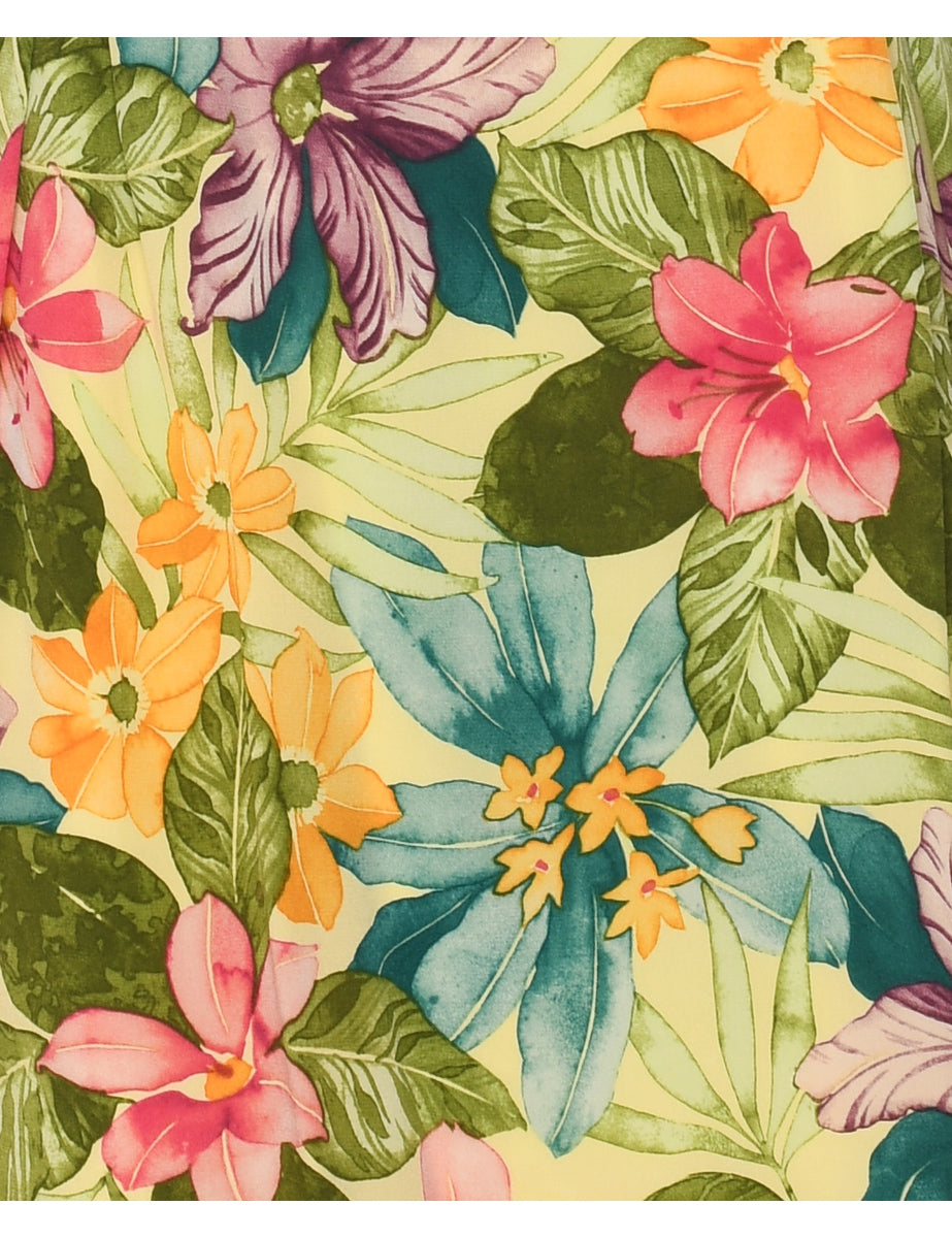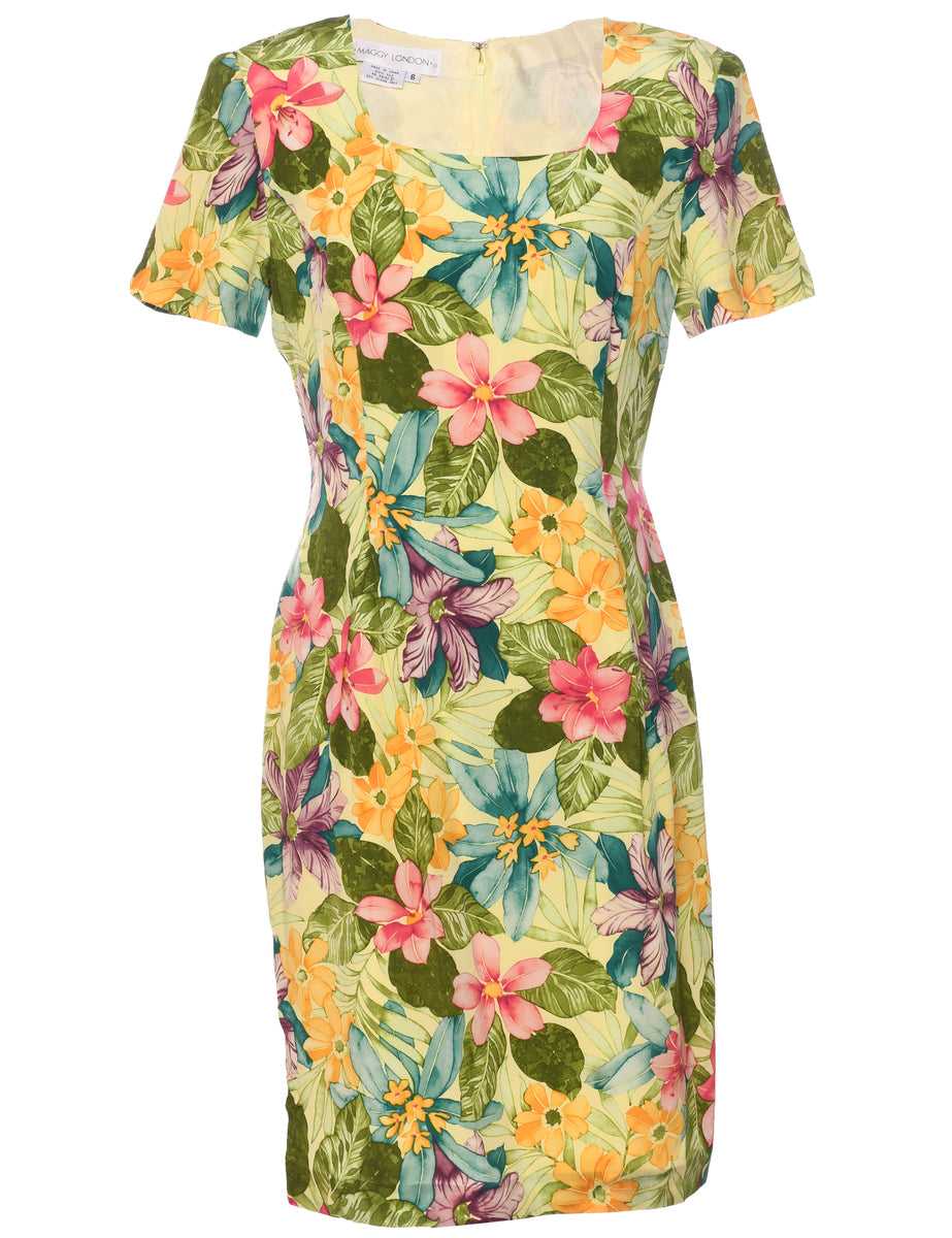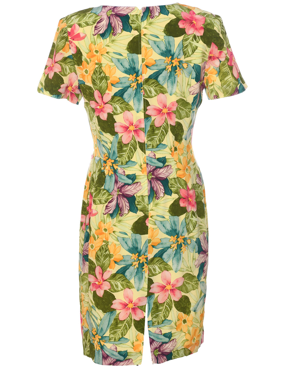 Floral print dress comes in multi-colour with slit and removable shoulder pads.