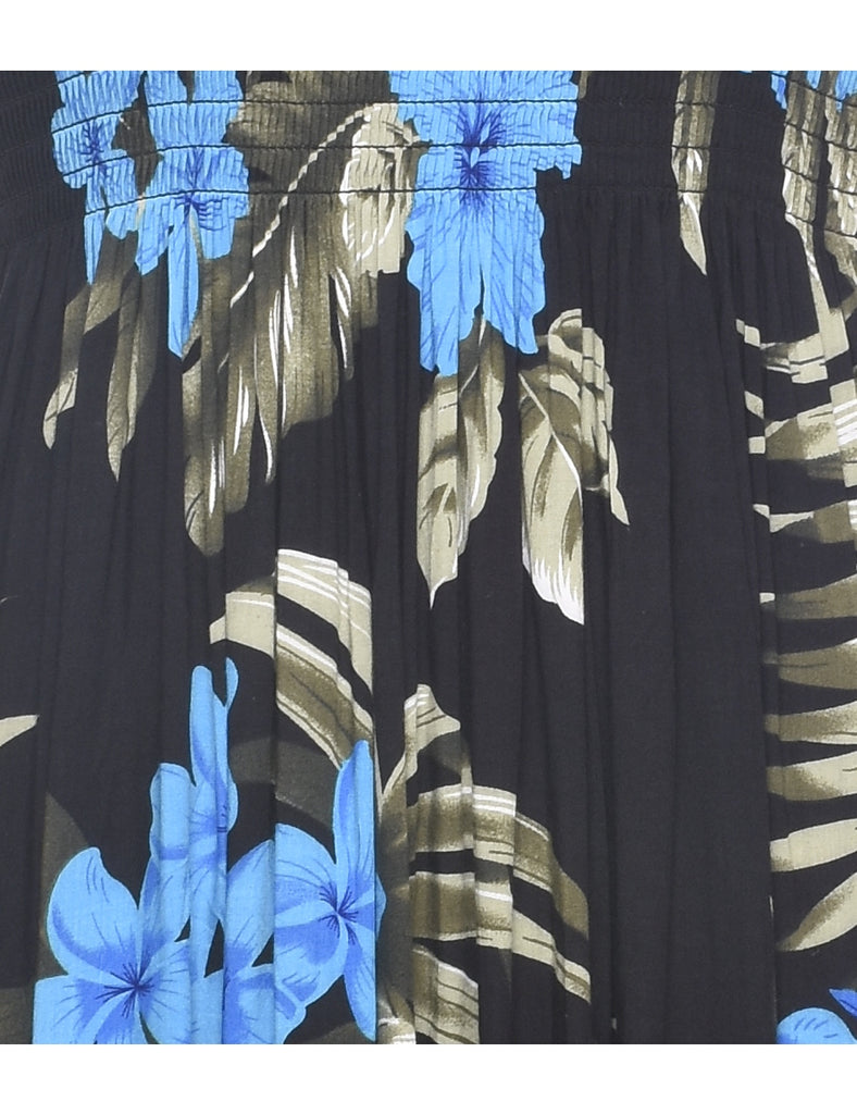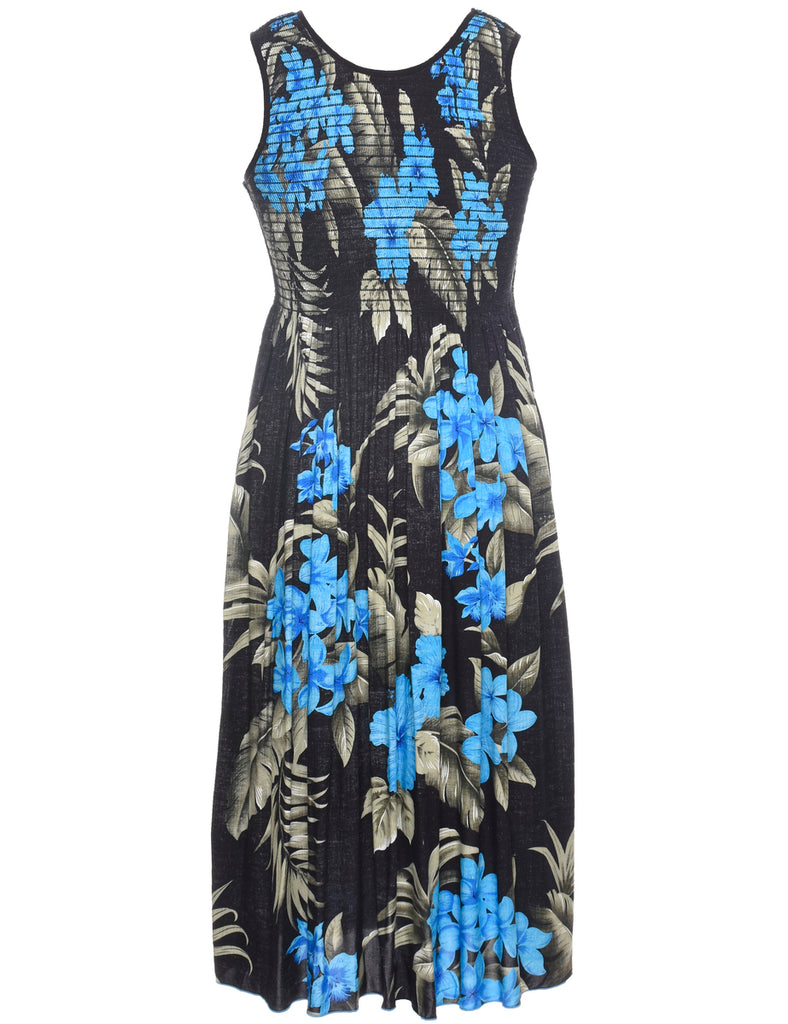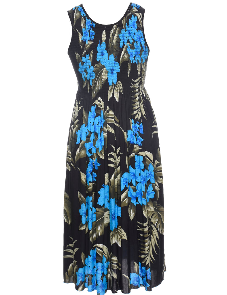 Smocked Floral Pattern Dress - M