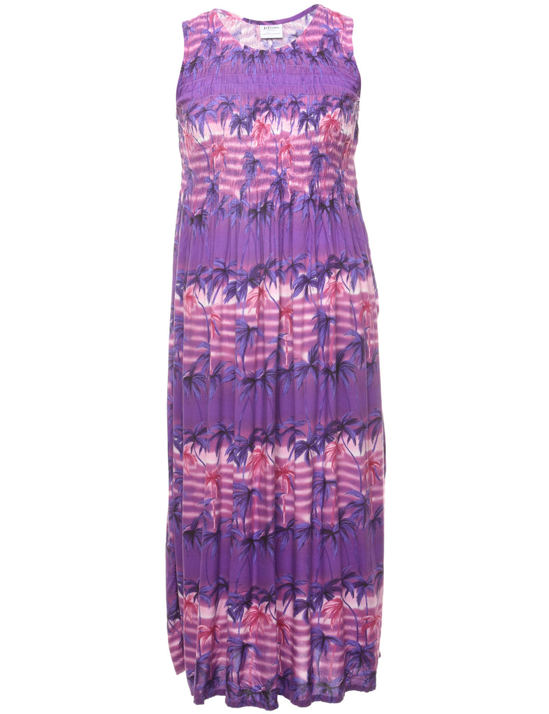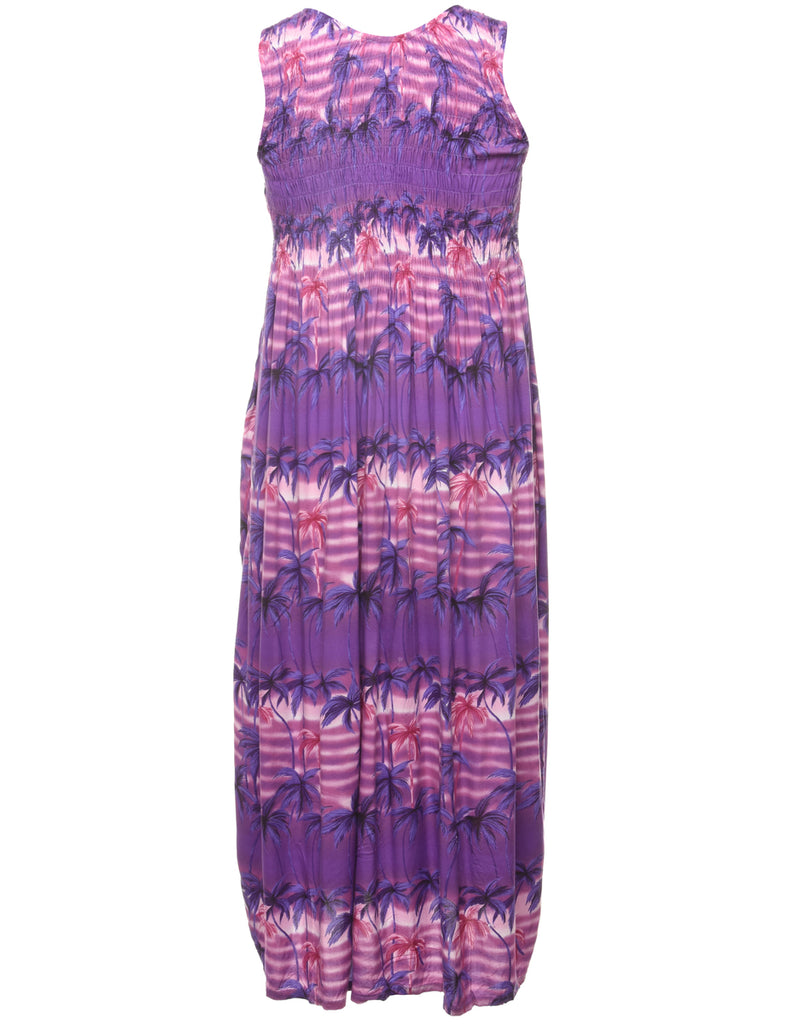 Smocked Tropical Print Dress - M