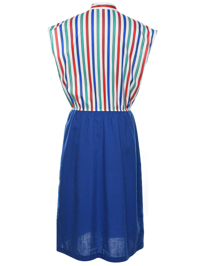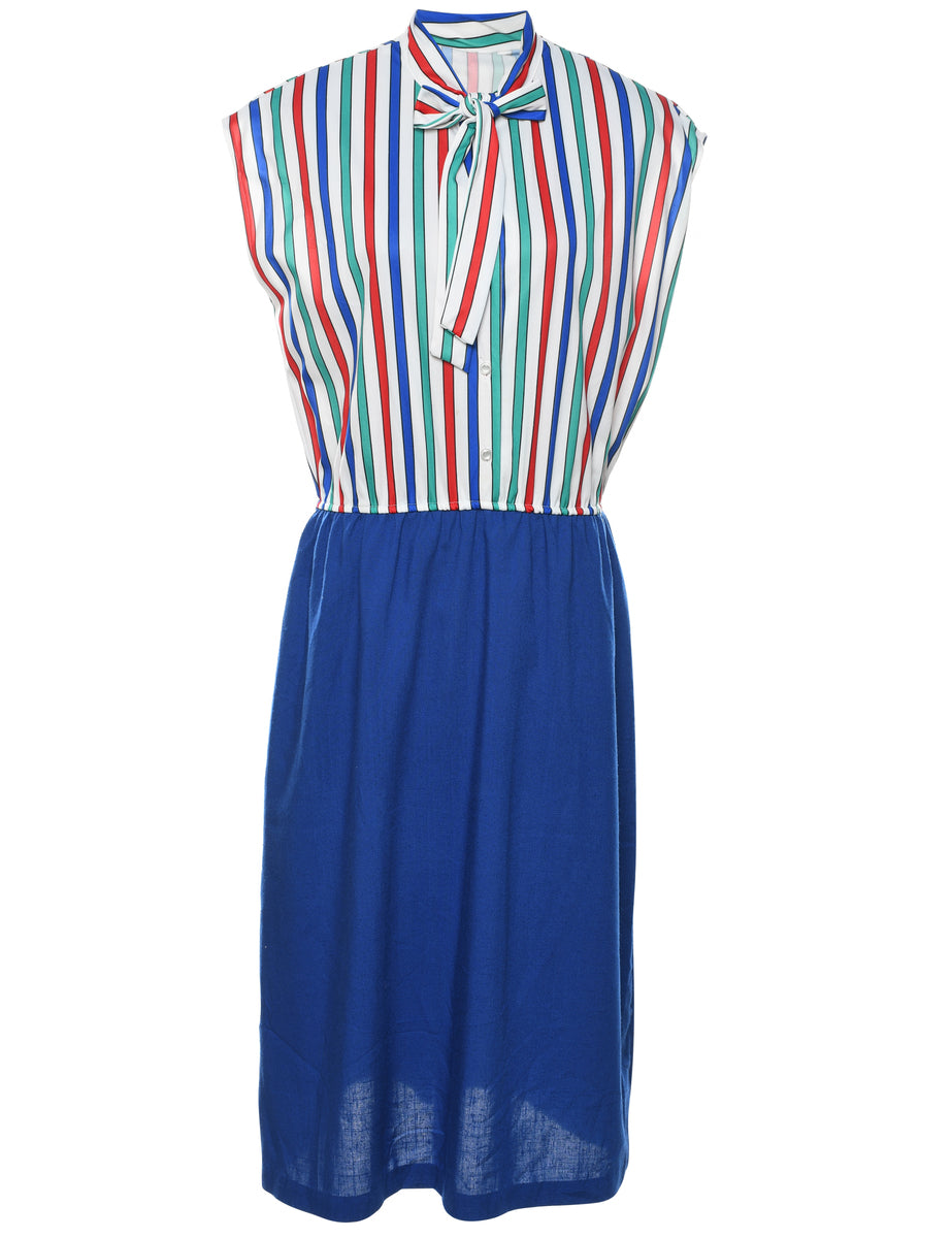 Striped multi-colour dress with a pussy bow.