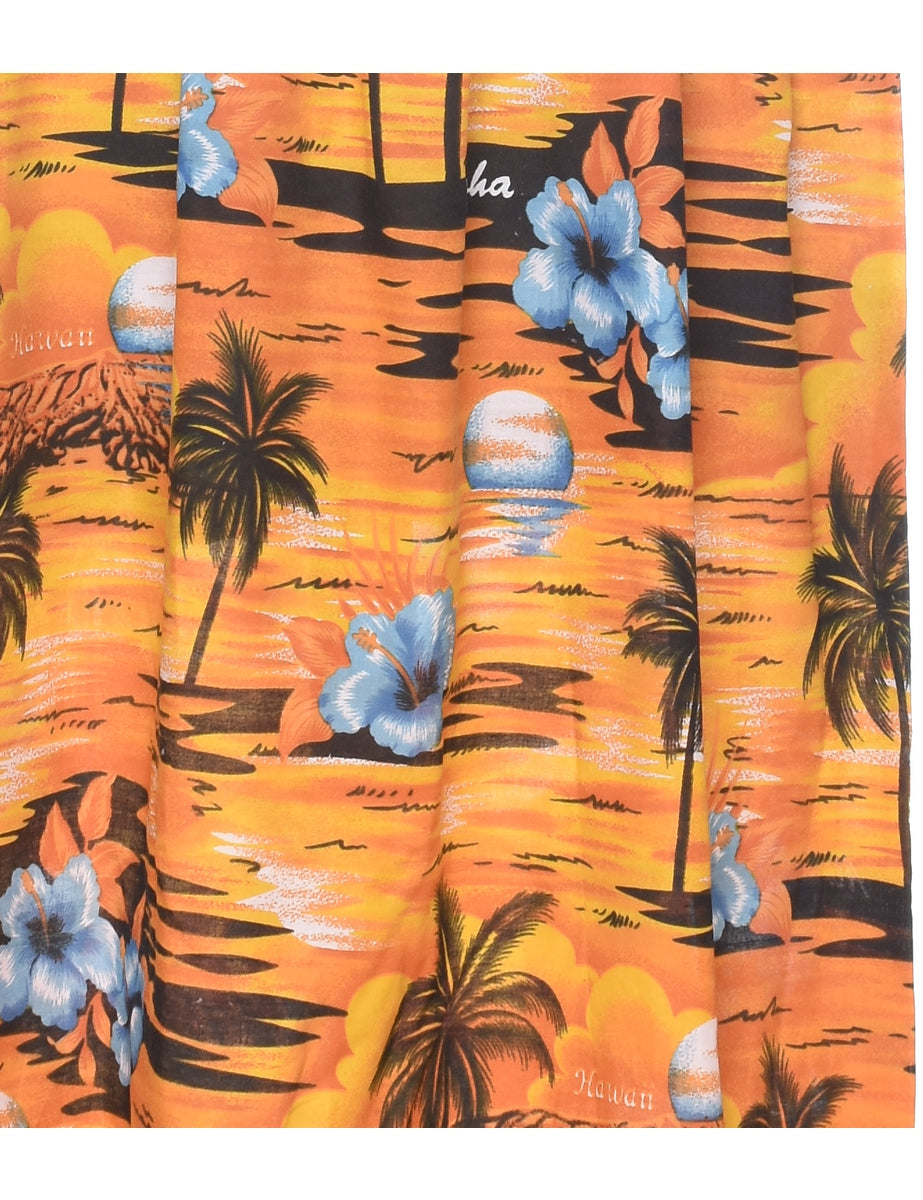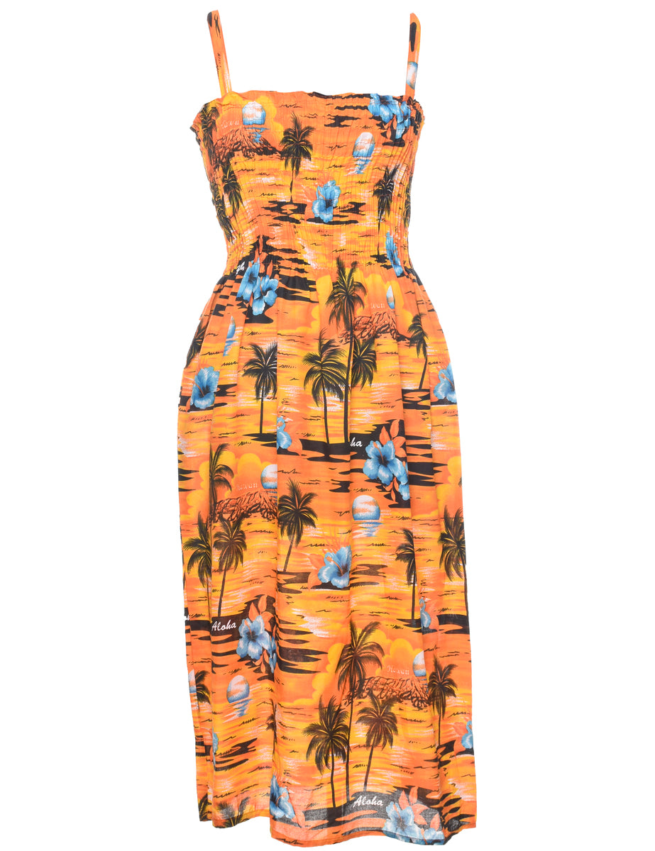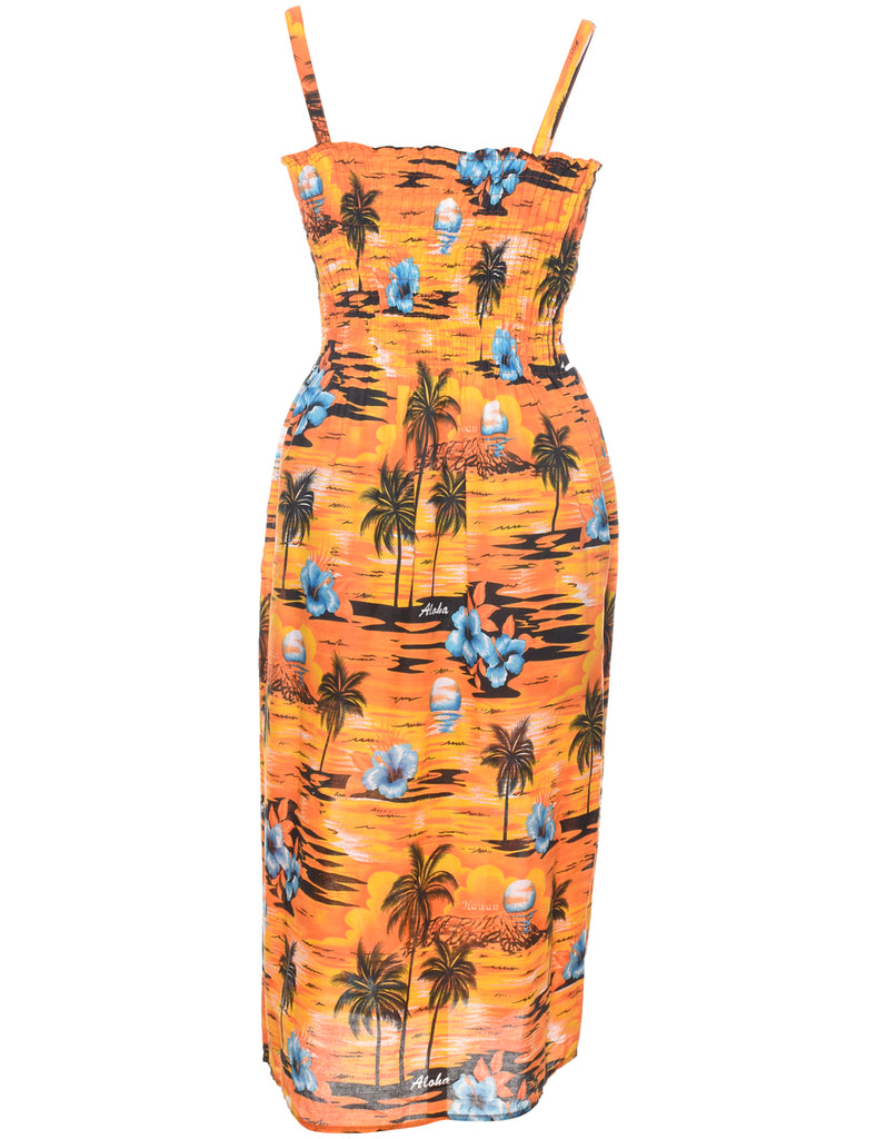 Tropical print dress. Comes in multi-colour. The size label mentions L but based on the actual measurements we consider it a size S.