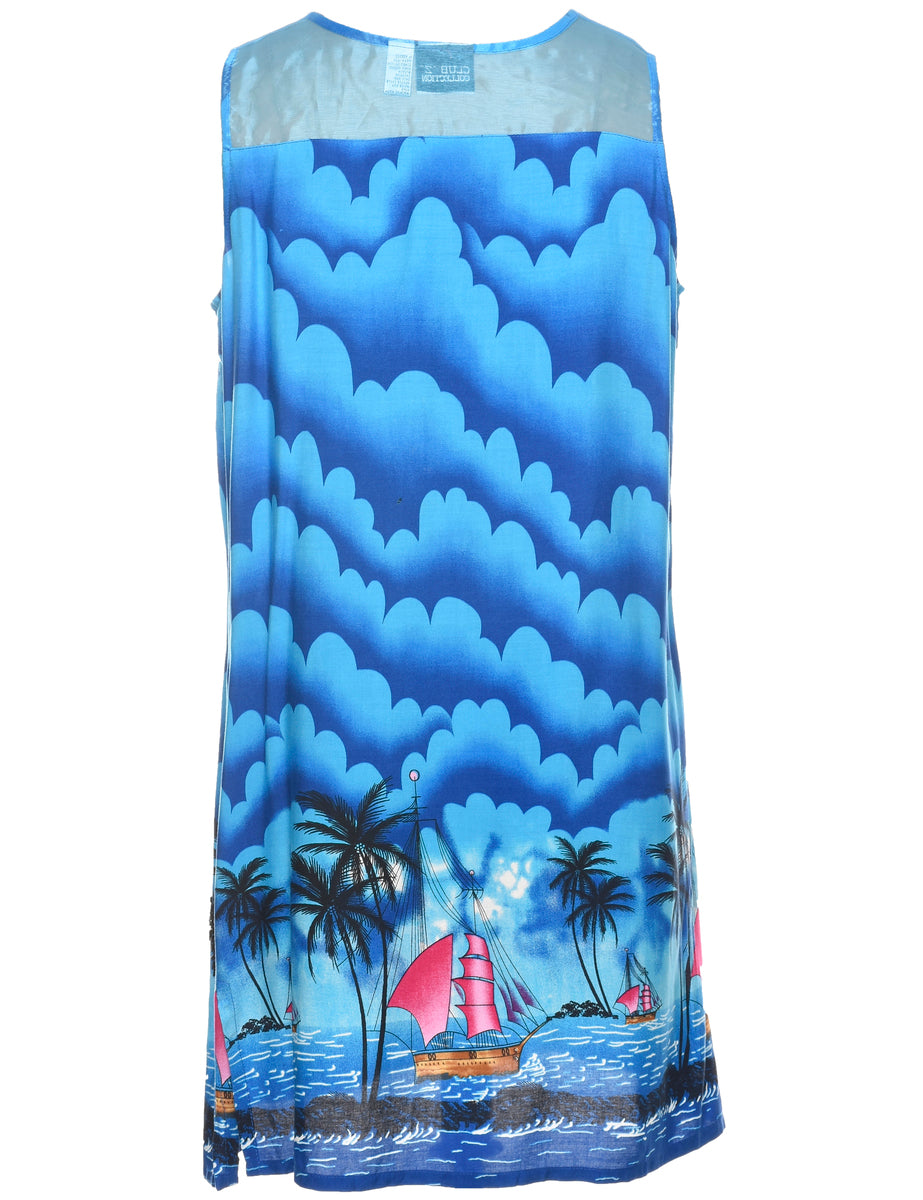Tropical Print Shift Dress - M