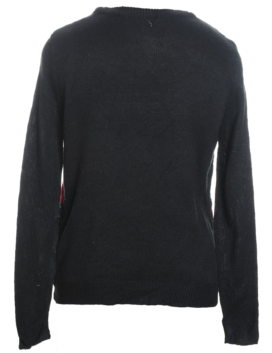 Black teddy bear design Christmas jumper complete with a pussy bow and sequins.