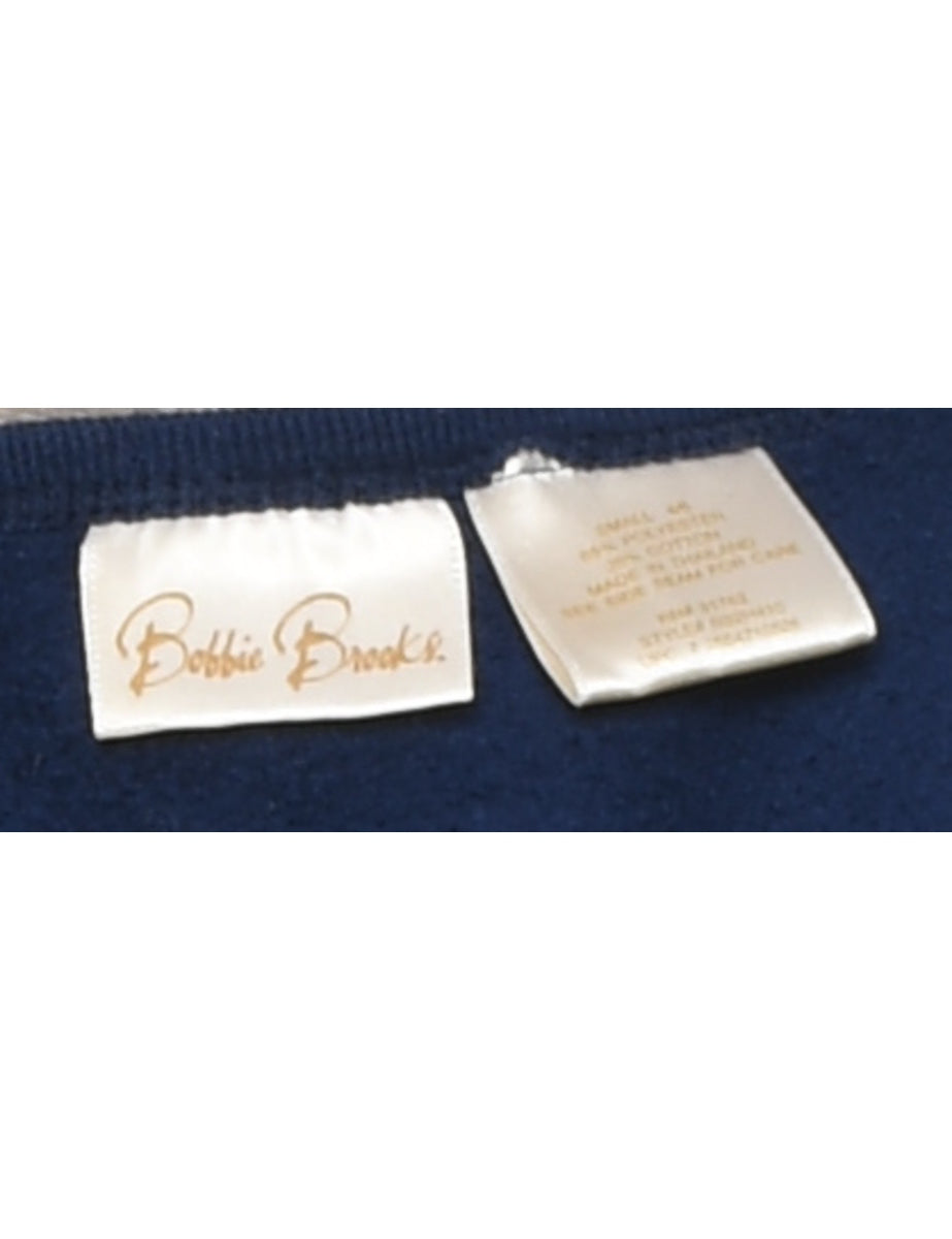Embroidered christmas sweatshirt comes in navy with a round neck and an applique design.