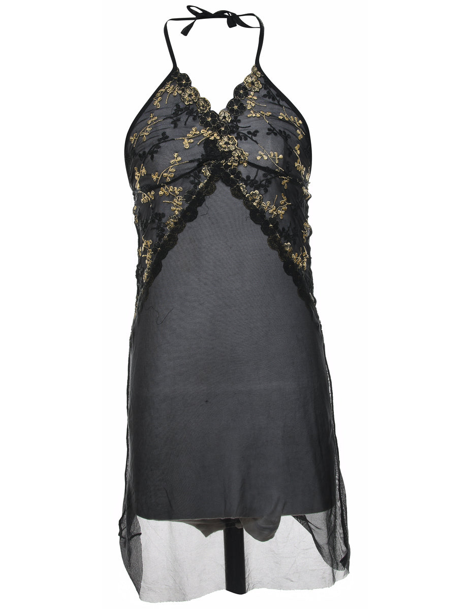 Vintage Black & Gold Lace Slip Dress - S