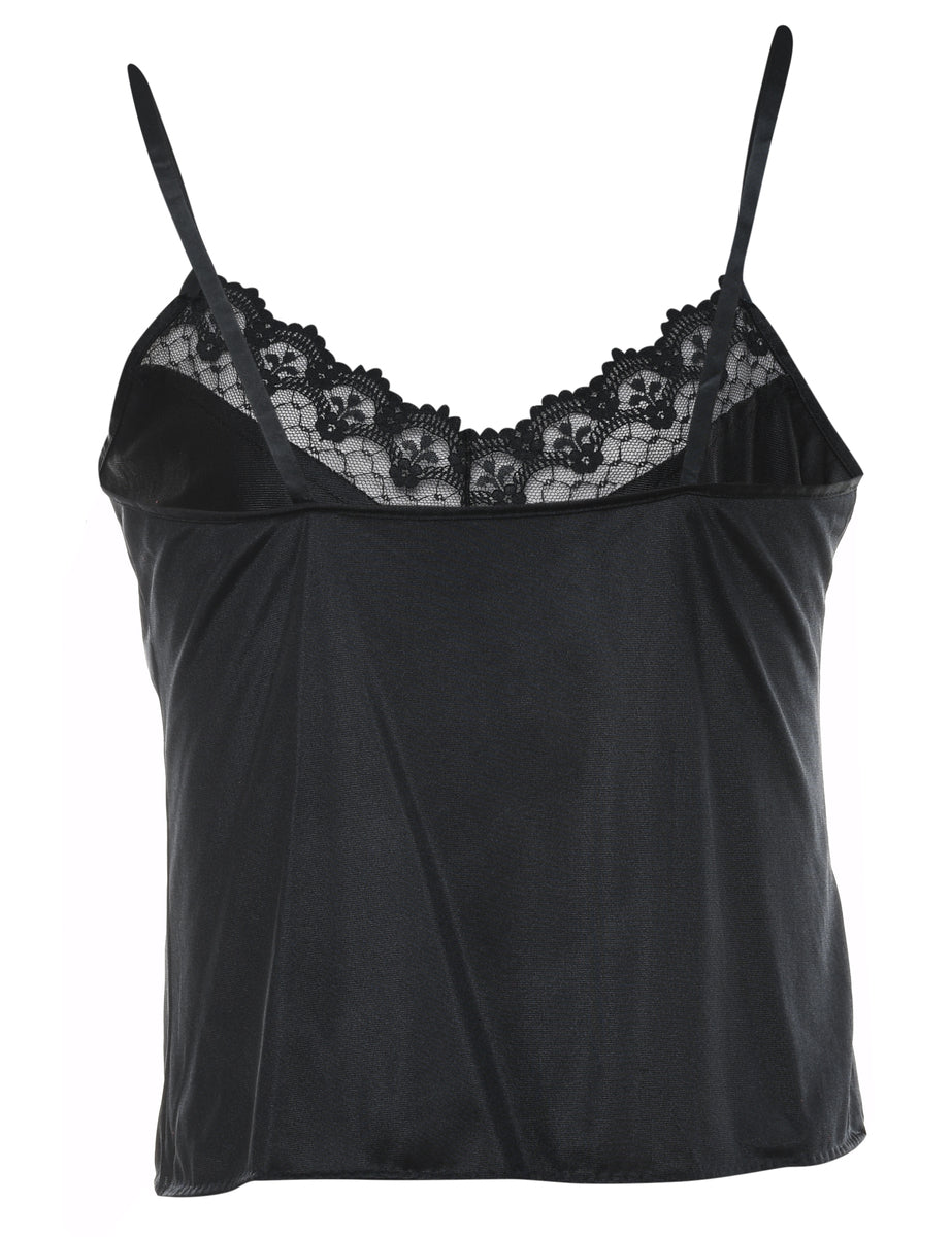 Vintage Black Lace Trim Cami Top - M