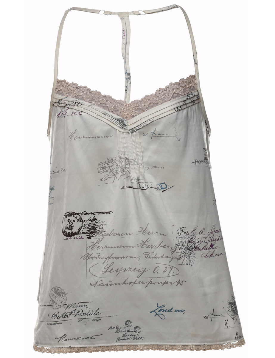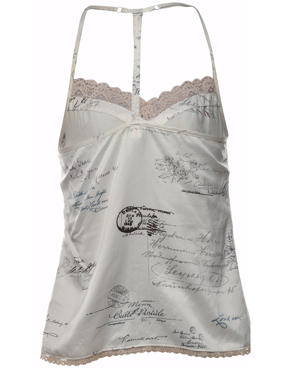 Vintage Black & Off-White Writing Print Silky Cami Top - M
