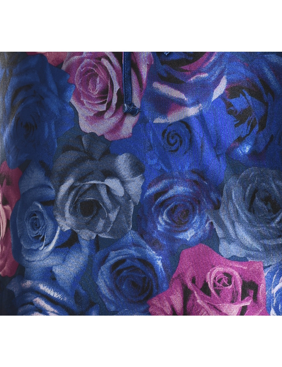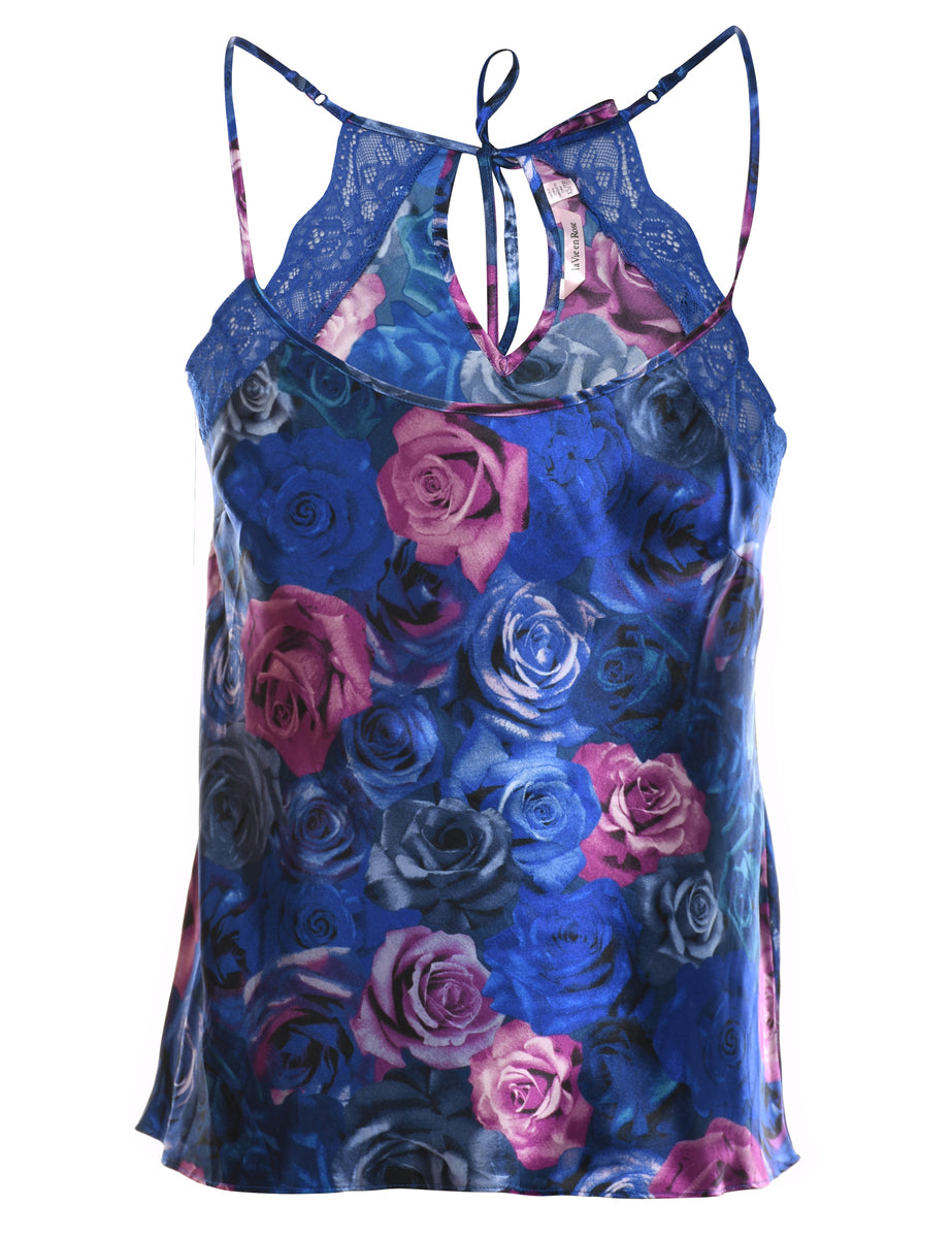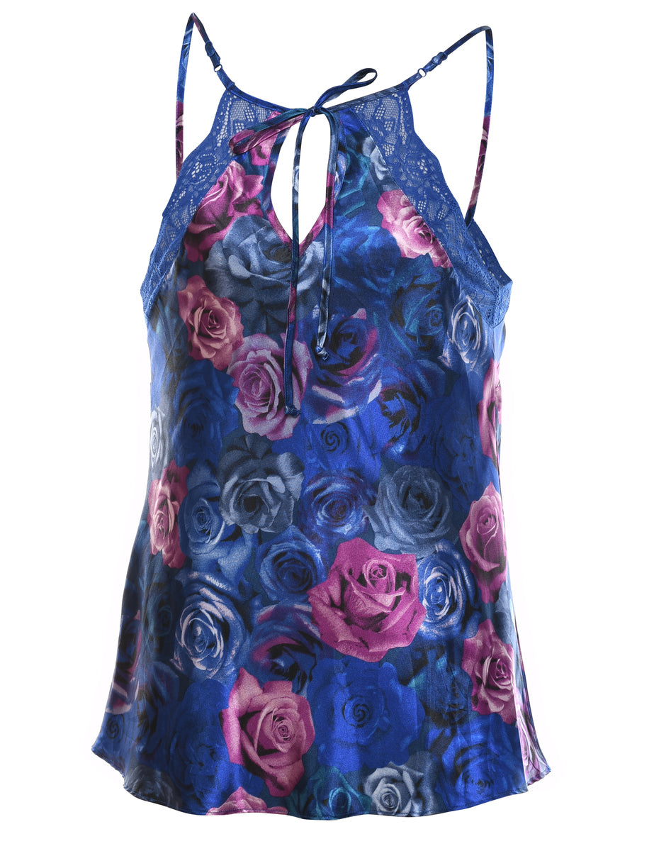 Vintage Floral Print Navy & Pink Silky Floral Design Slip - M