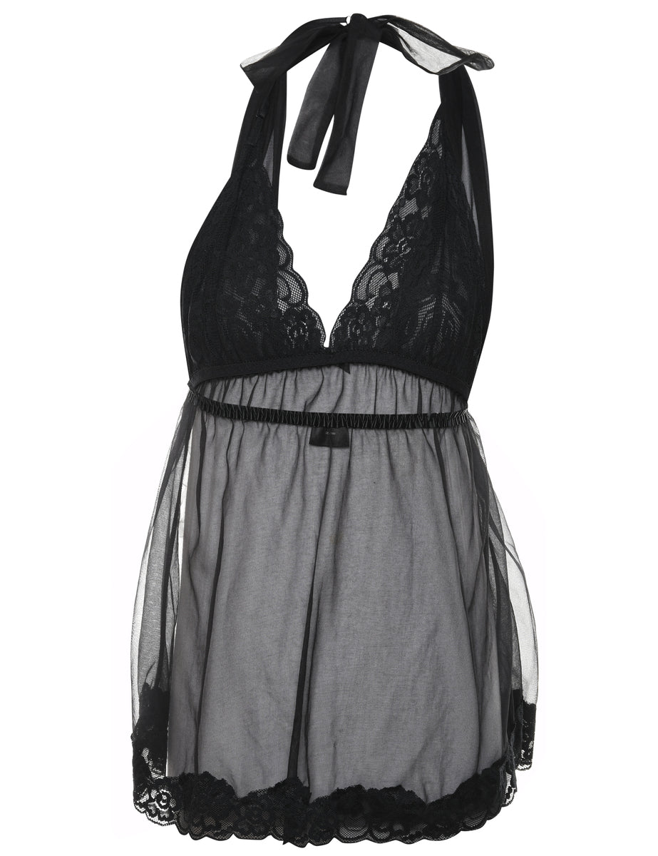 Vintage Fredricks of Hollywood Sheer Black Lace Halterneck Babydoll - S