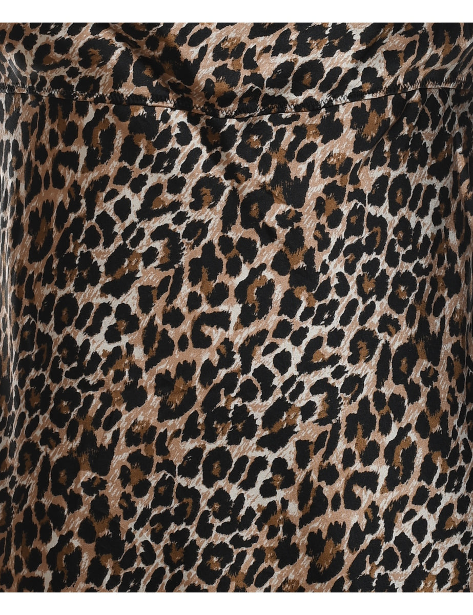 Vintage Leopard Print Silky Slip Dress - M