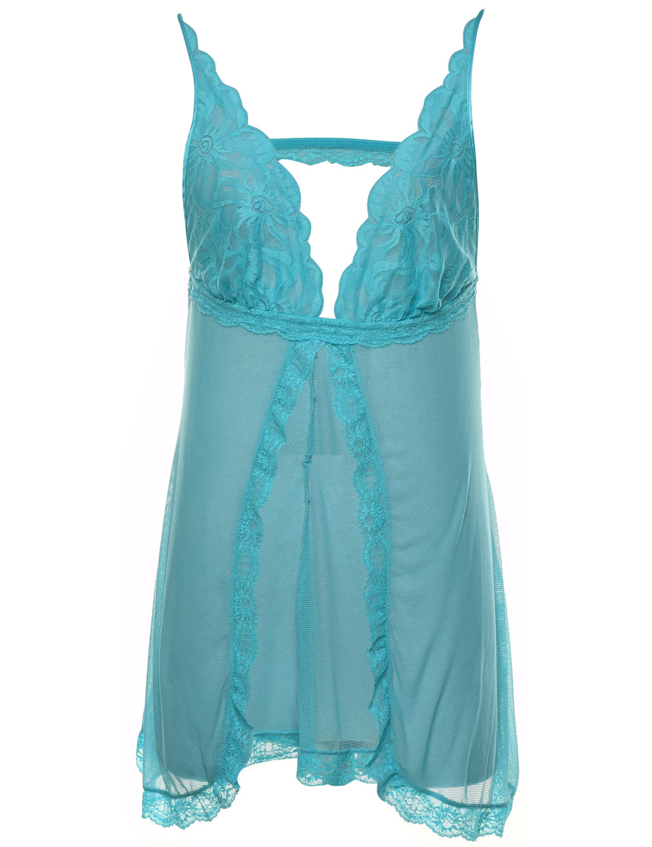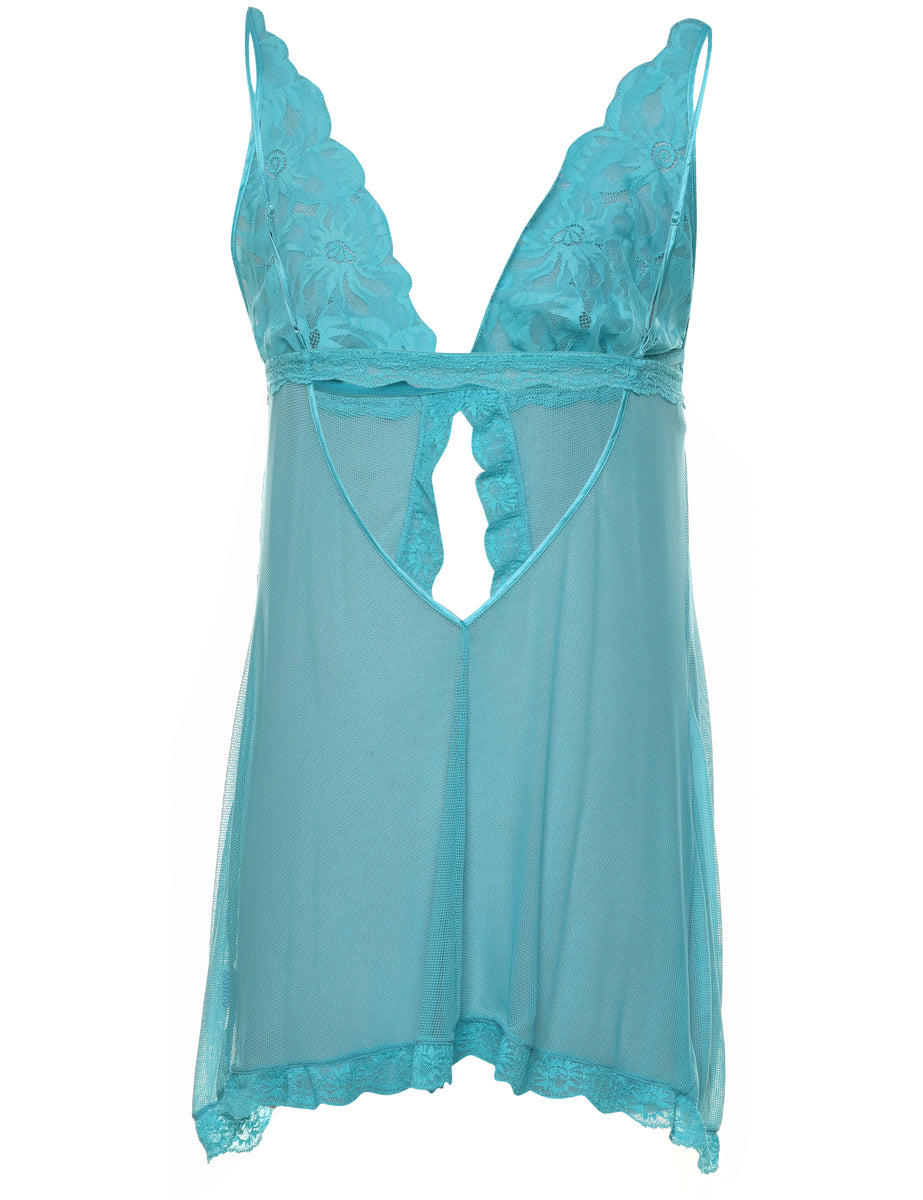 Lace babydoll. Comes in light blue complete with a key hole neck.
