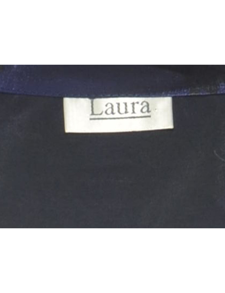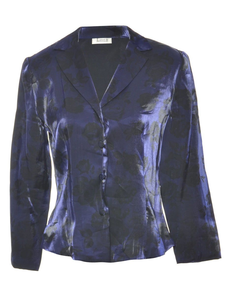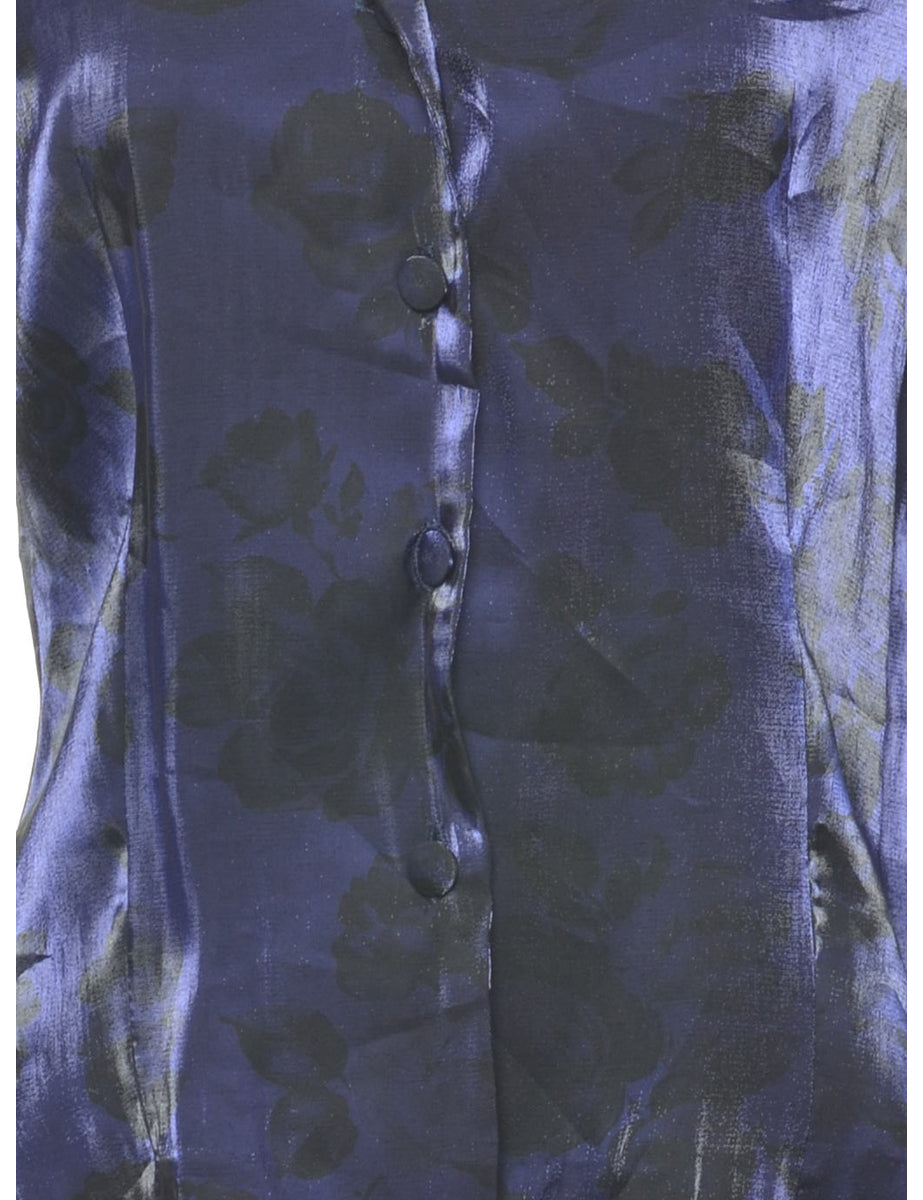 Button front evening shirt with metallic finish. Comes in purple with removable shoulder pads.