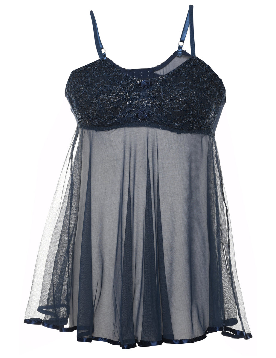 Navy sheer babydoll complete with adjustable straps, embroidery and a boned bodice.