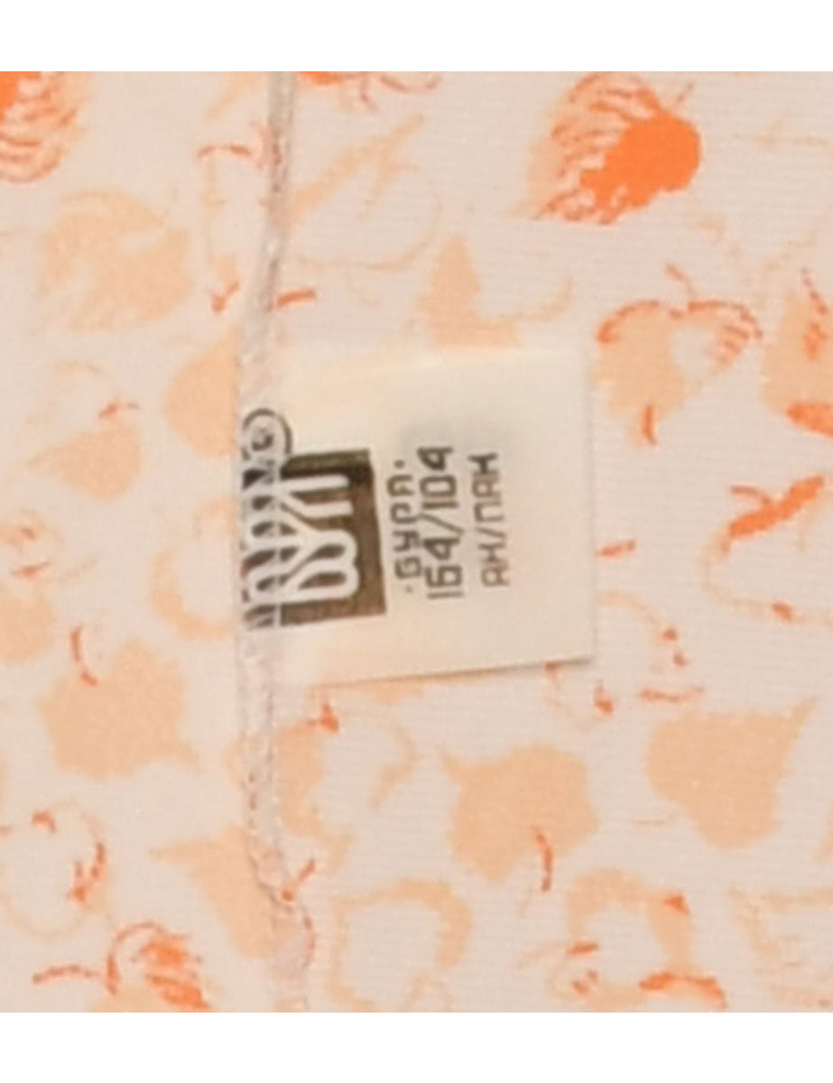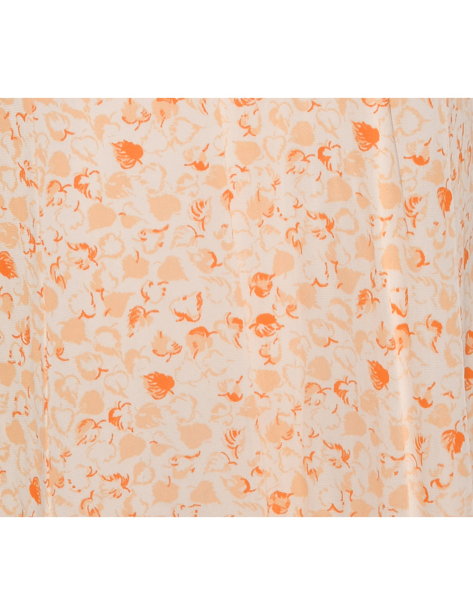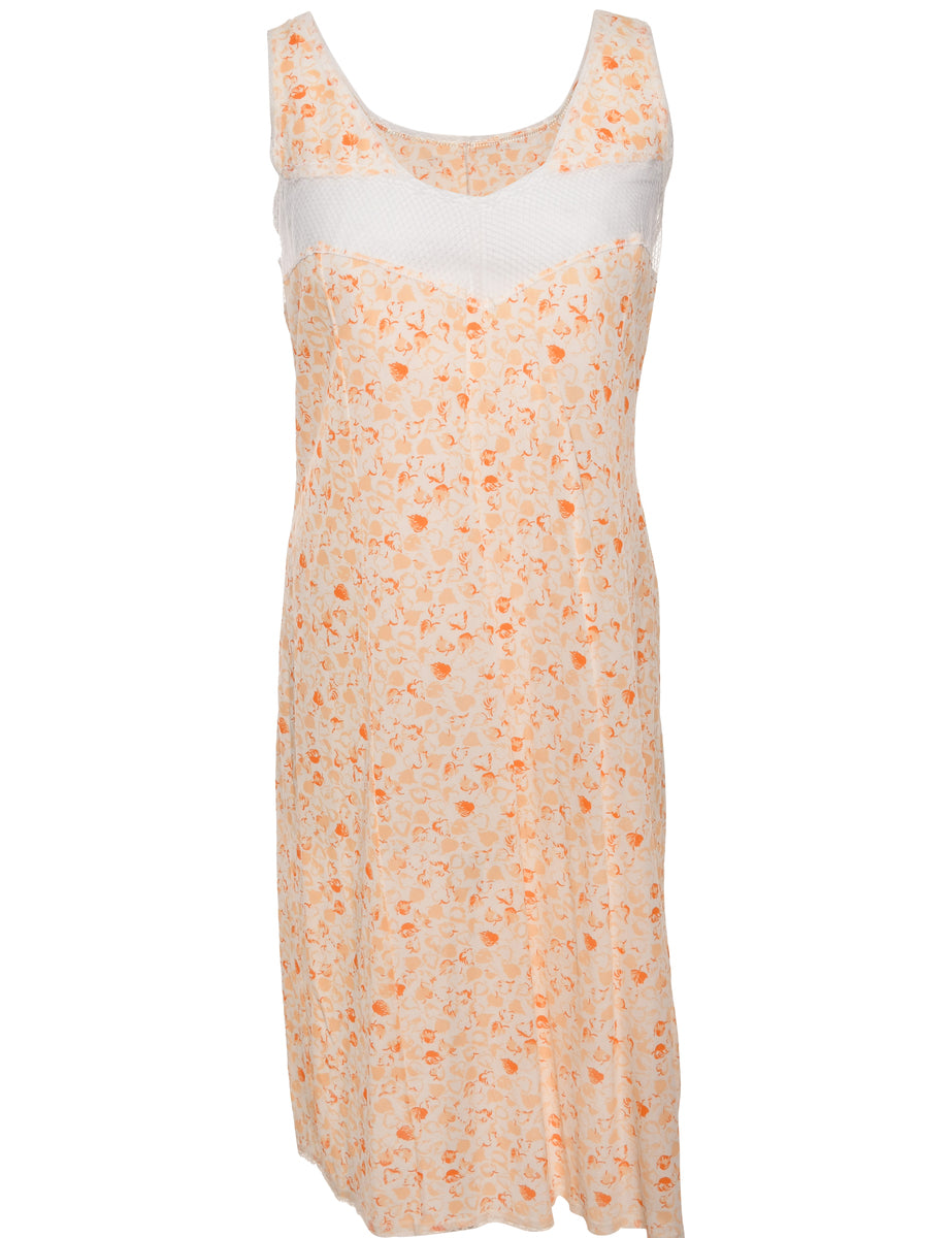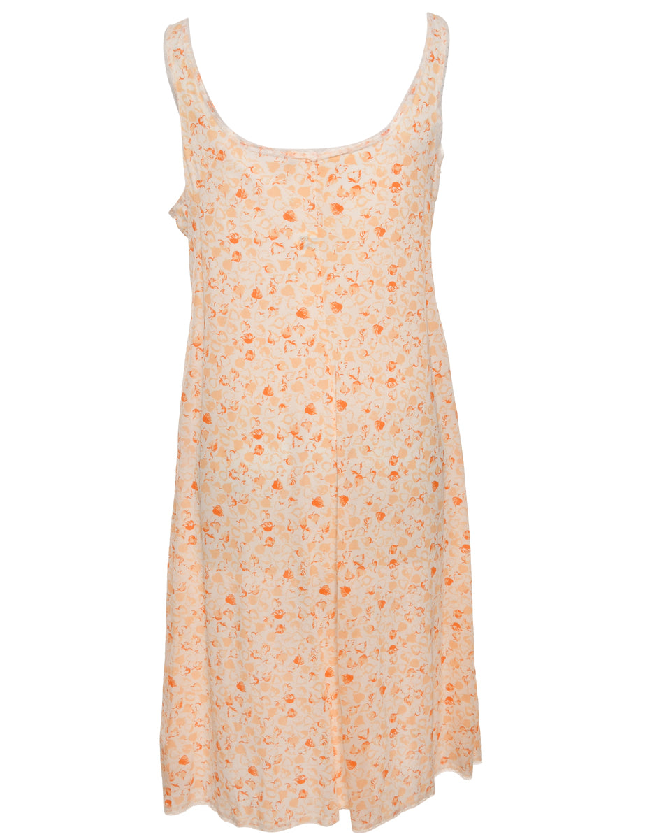 Vintage Orange Leafy Print Classic Slip Dress - M