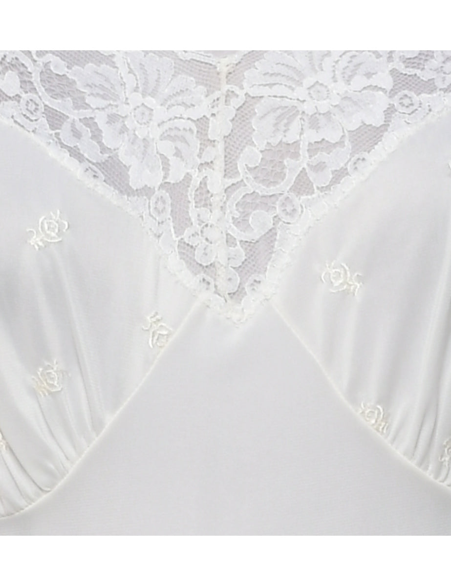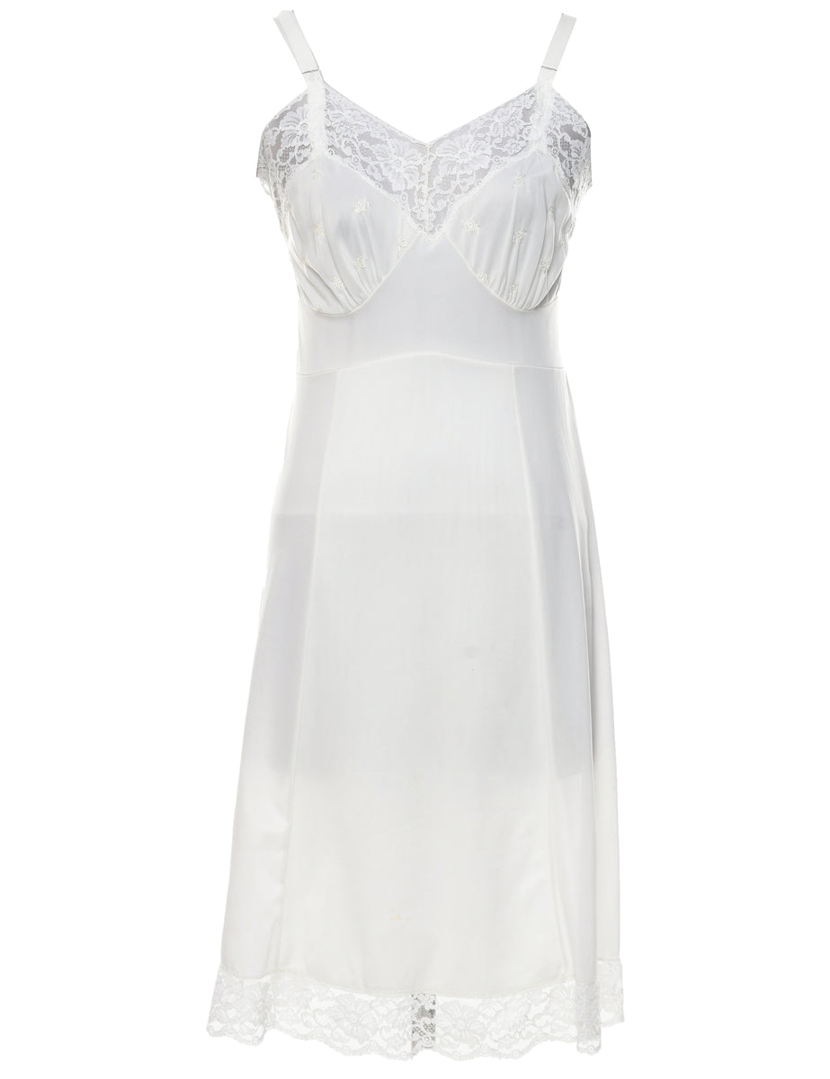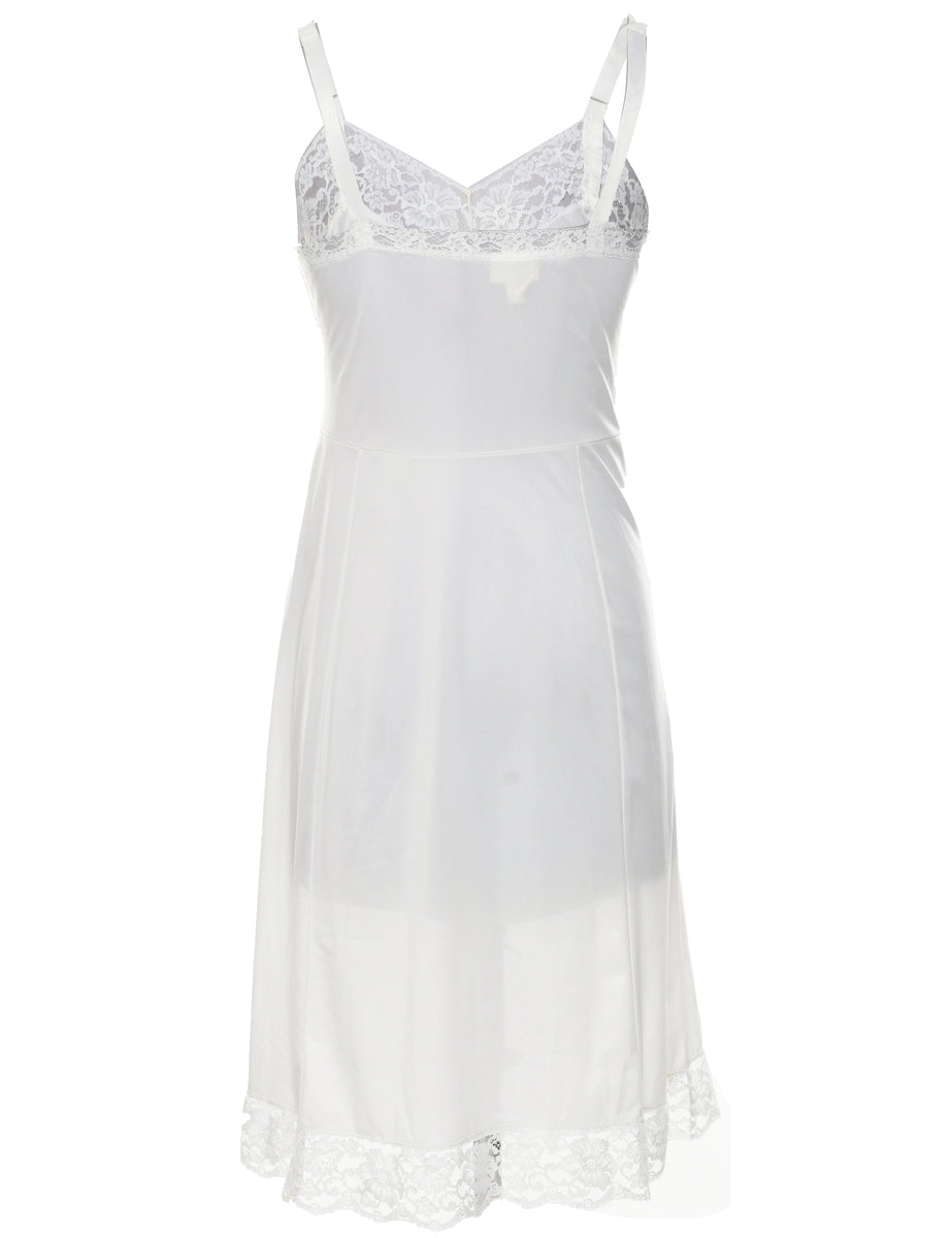 Slip in pale yellow with adjustable straps and lace trim.