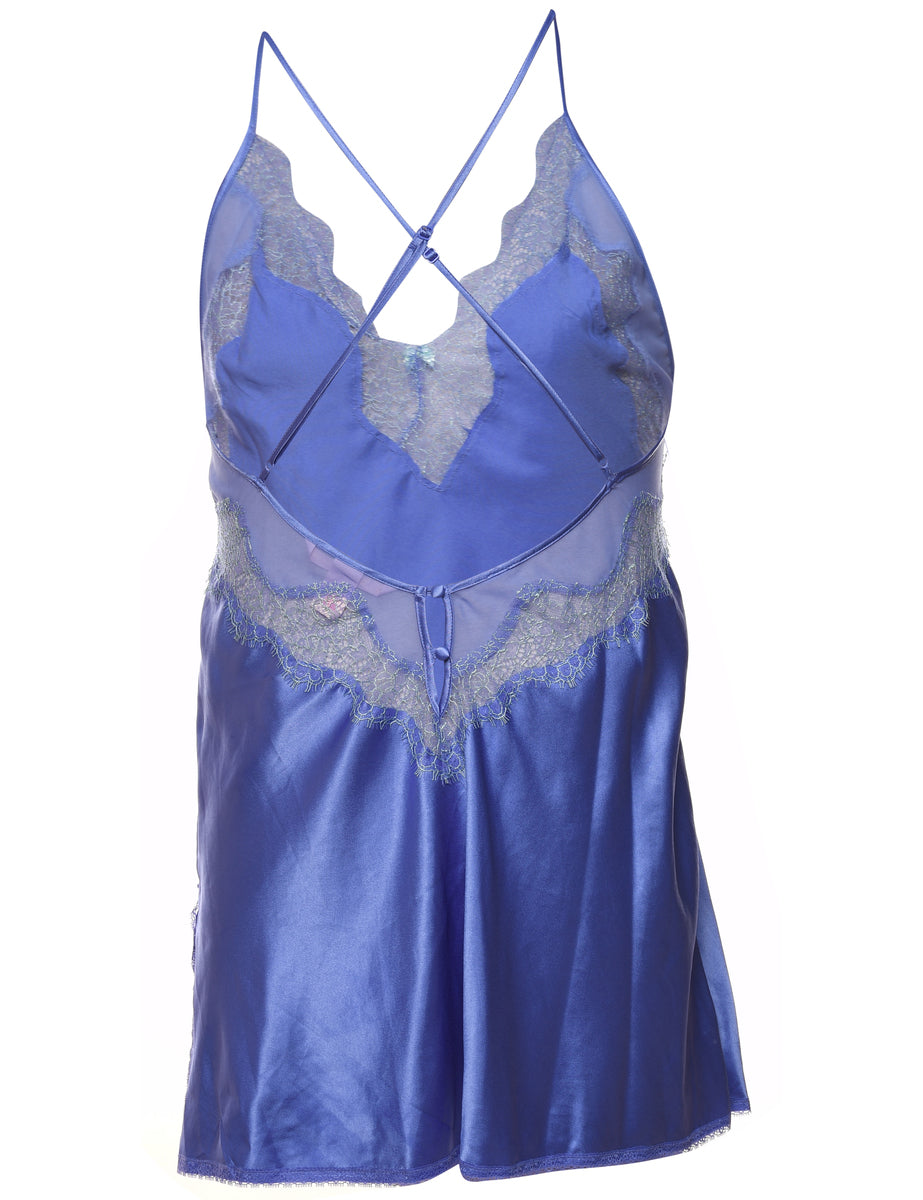 Vintage Purple Lace Trim Criss-Cross Back Slip - M