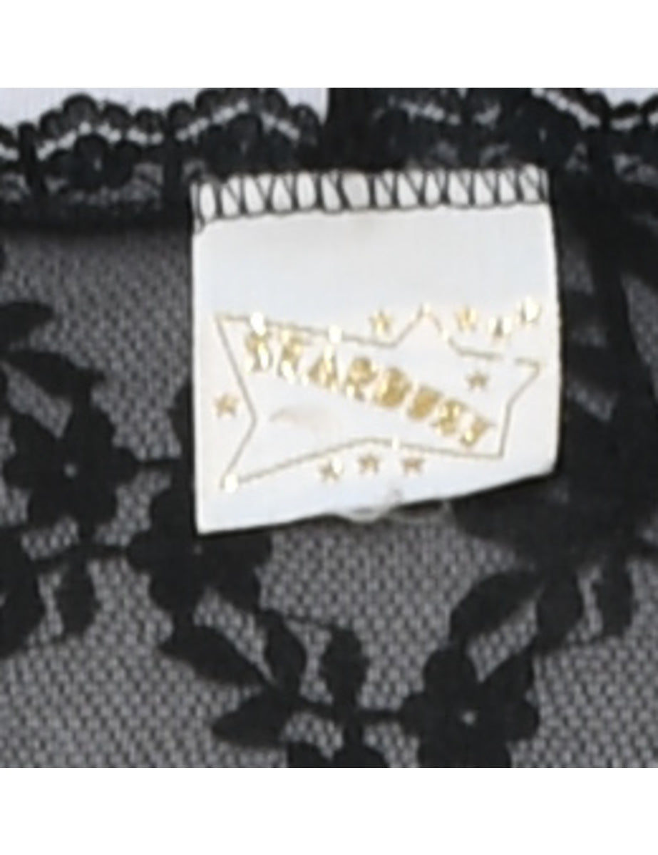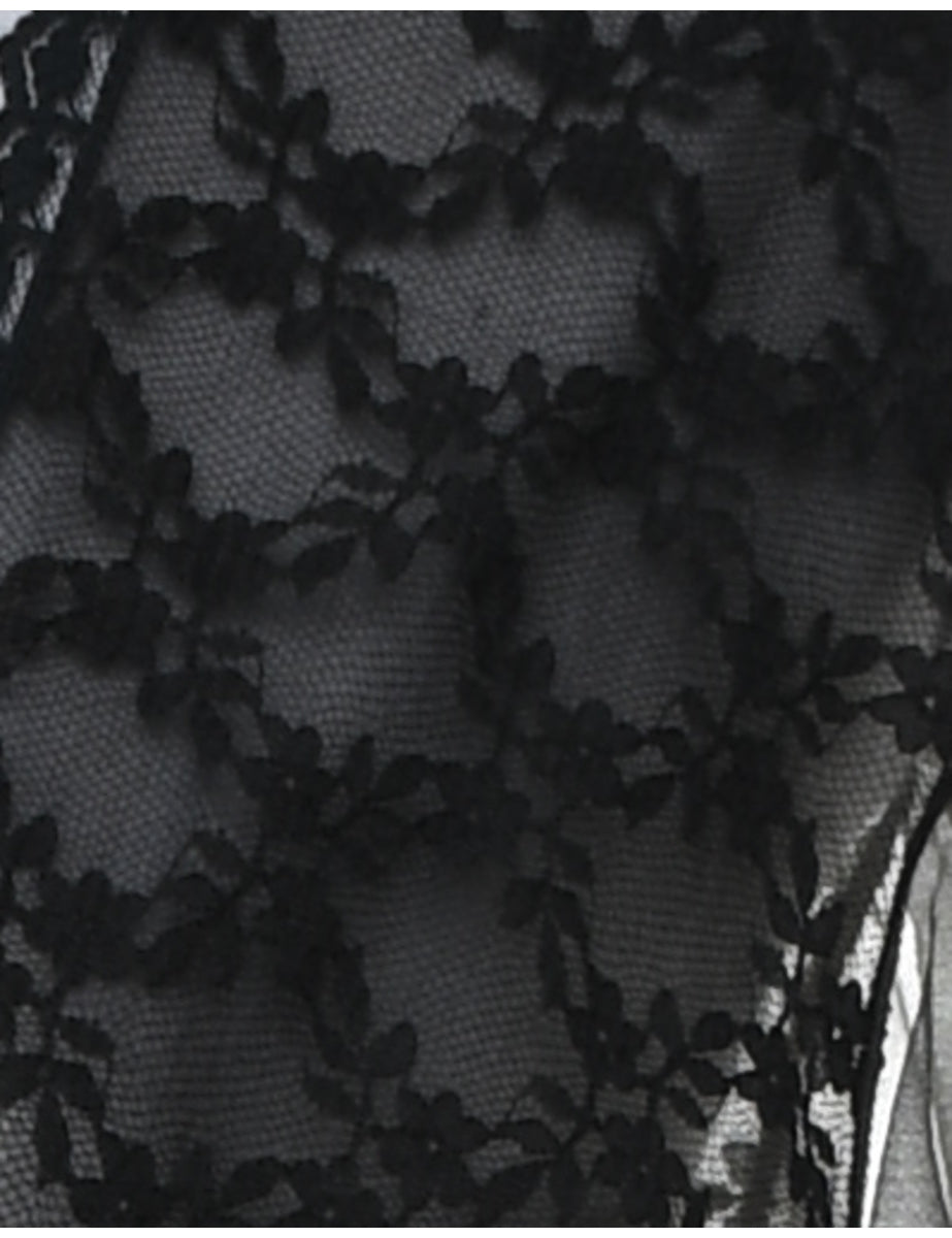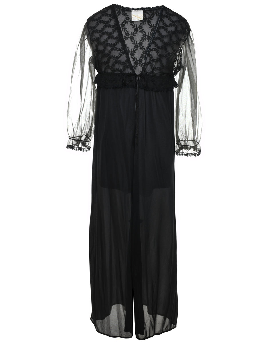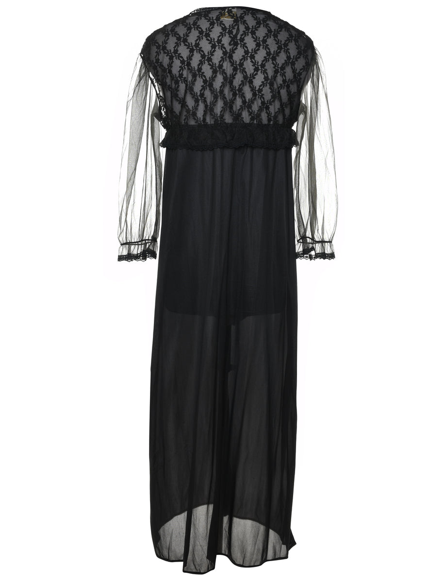 Sheer Sleeved Black Vintage Lace Nightdress - M