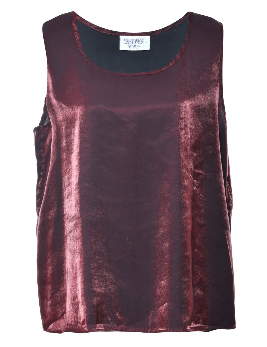 Sleeveless evening top. Comes in burgundy with a round neck.
