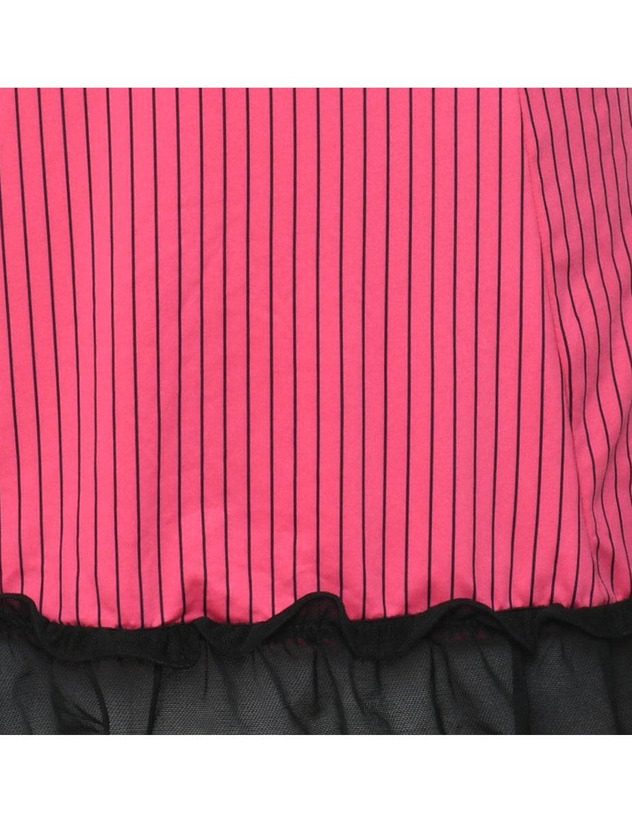 Exotic pink babydoll with stripy pattern, adjustable straps and lace trim.