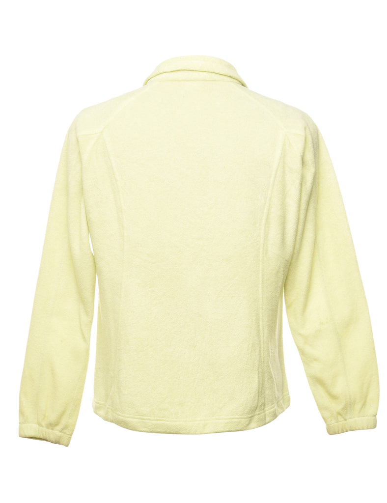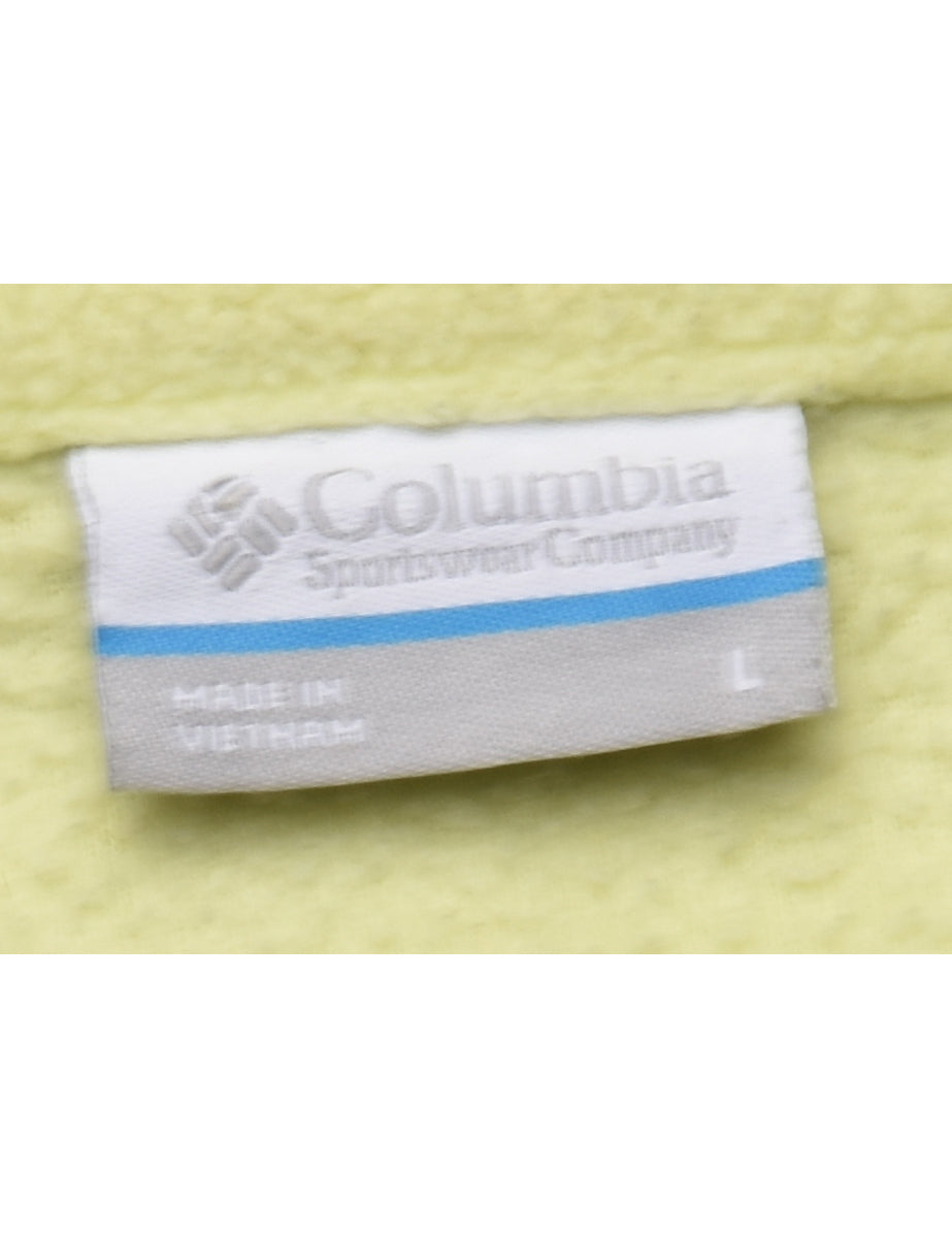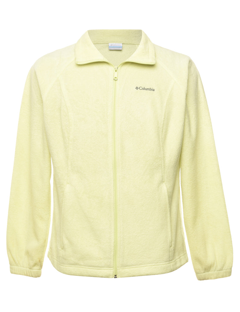Columbia zip front fleece jacket in green with zippered pockets and raglan sleeves.