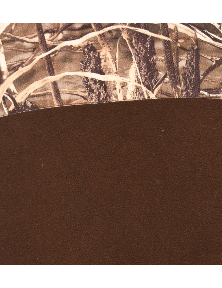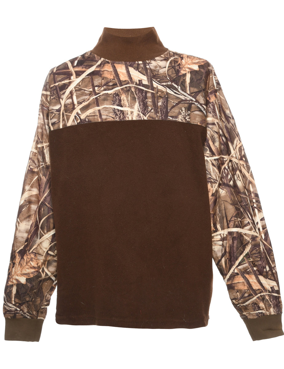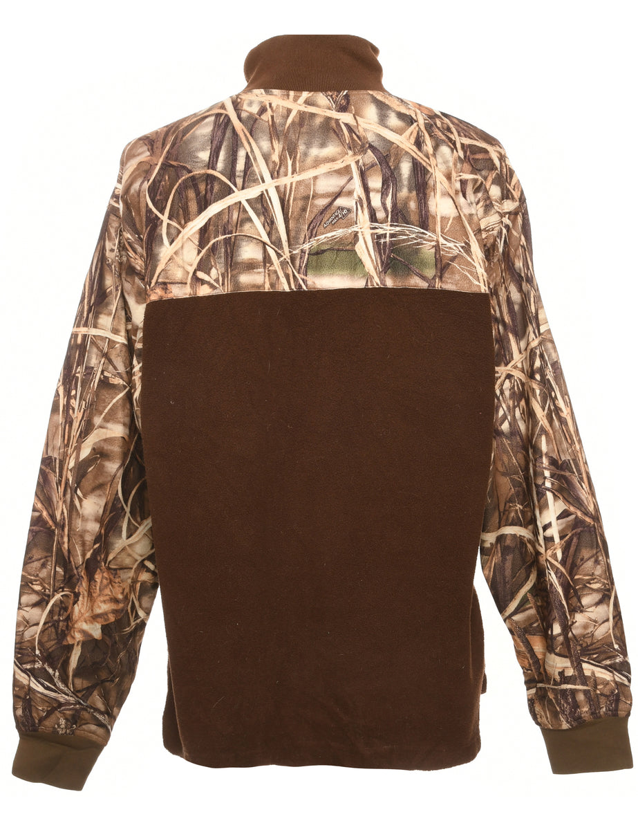 Vintage High Neck Dark Brown Y2K Tree Camo Fleece Sweatshirt - M
