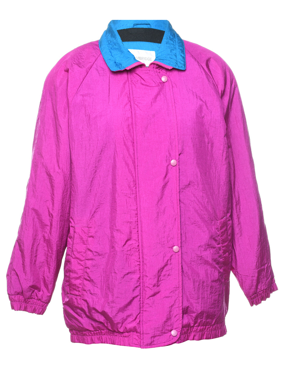 Magenta & Blue Contrast Fleece Lined Nylon Jacket - S