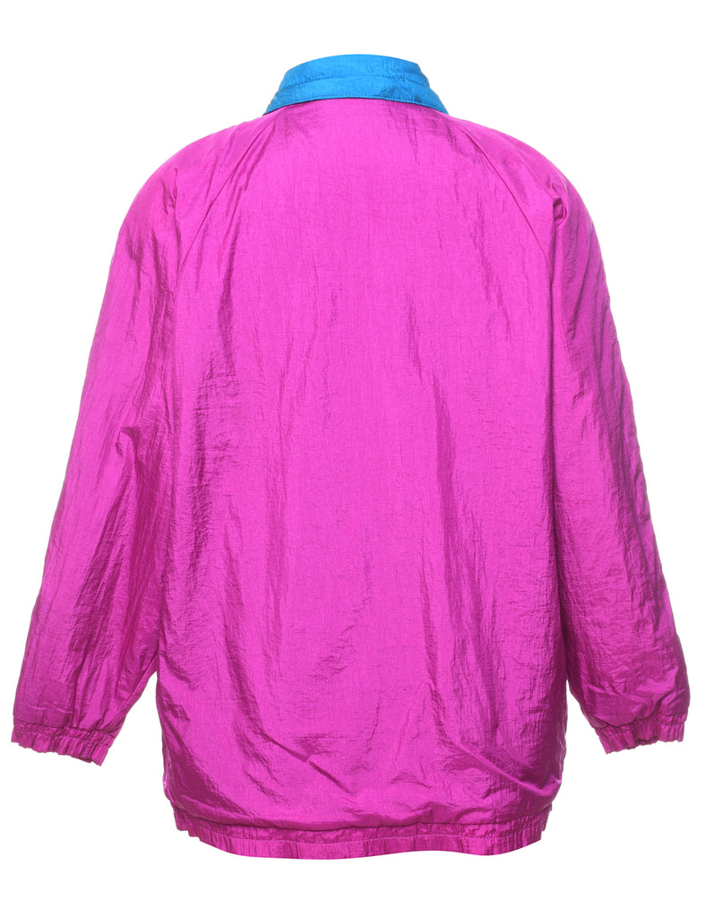 Magenta & blue contrast nylon jacket complete with fleece lining and raglan sleeves.