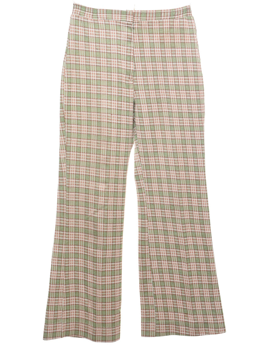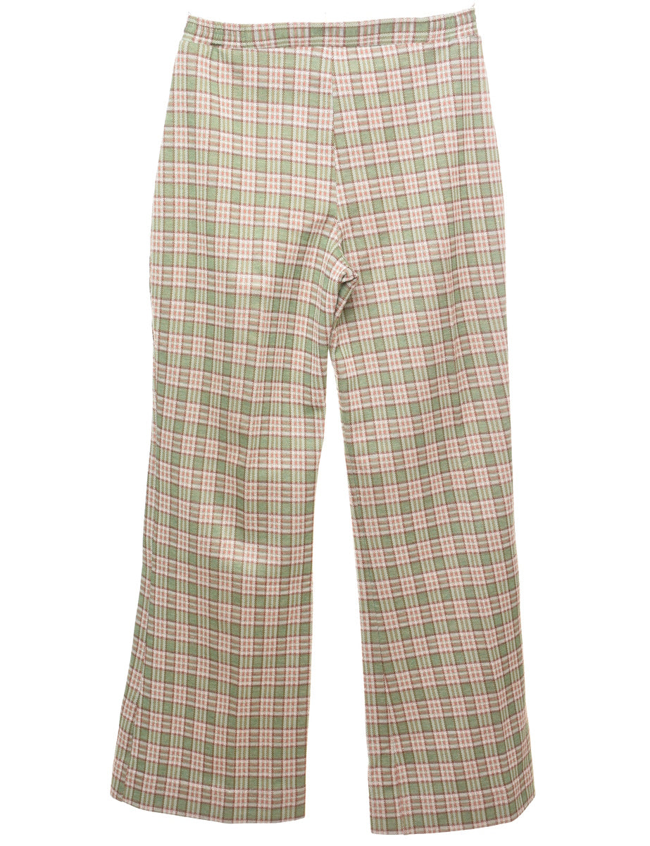 Vintage Checked Green & Light Flared Trousers - W28 L31